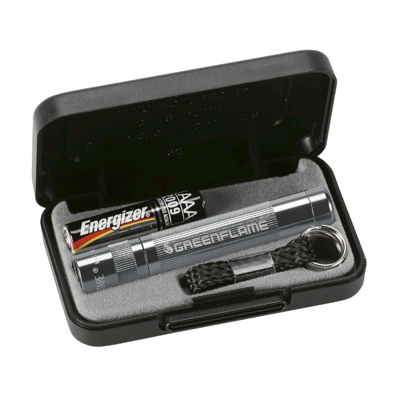 De kleinste Maglite® lamp met een lengte van 8 cm, een doorsnede van 1,2 cm en een gewicht van slechts 25 gram (inclusief batterij). Lichtbereik 20 meter. 2 lumen. Blijft onafgebroken presteren tot 3¾ uur op 1 batterij. Inclusief handige sleutelring, reservelampje en batterij. Per stuk in cassette.