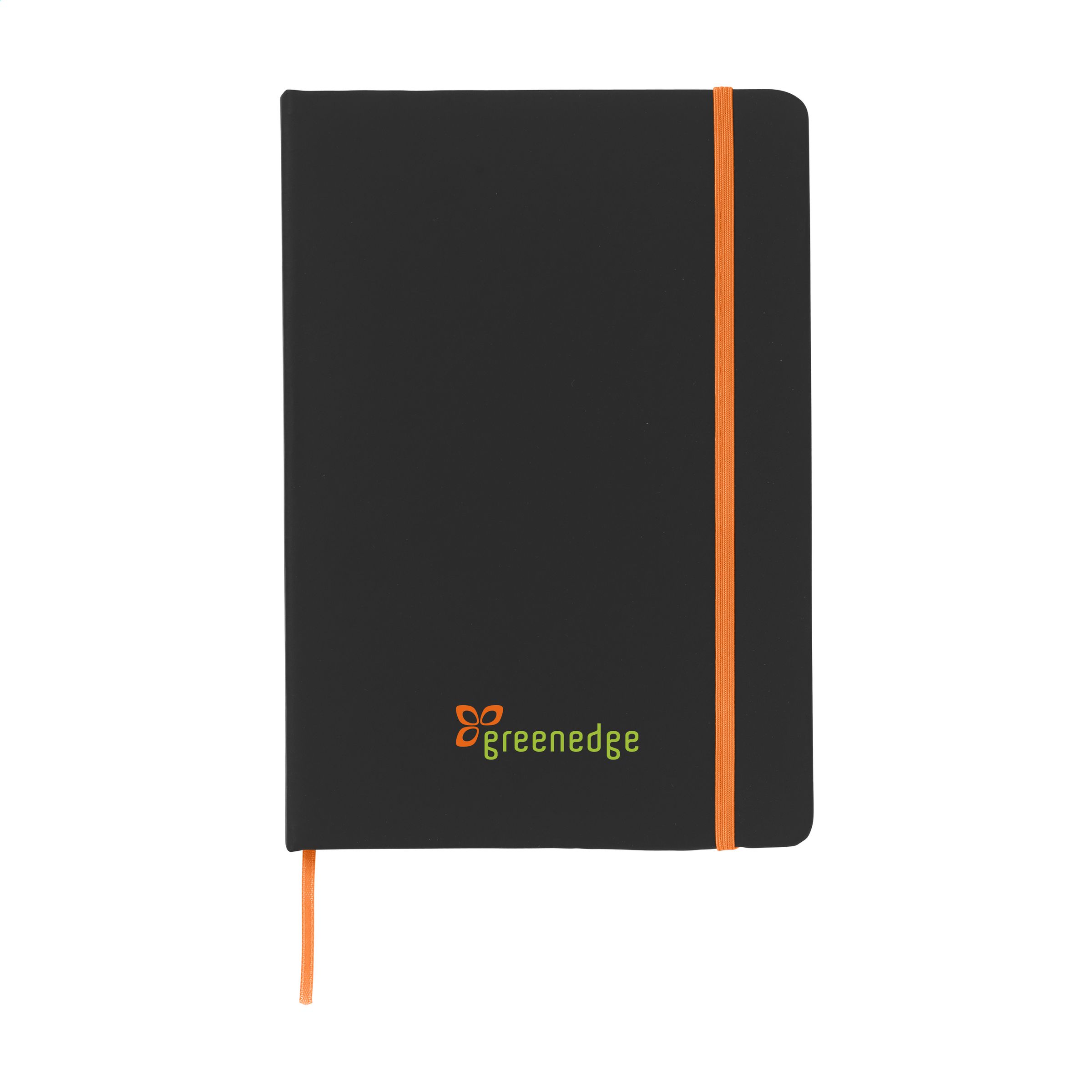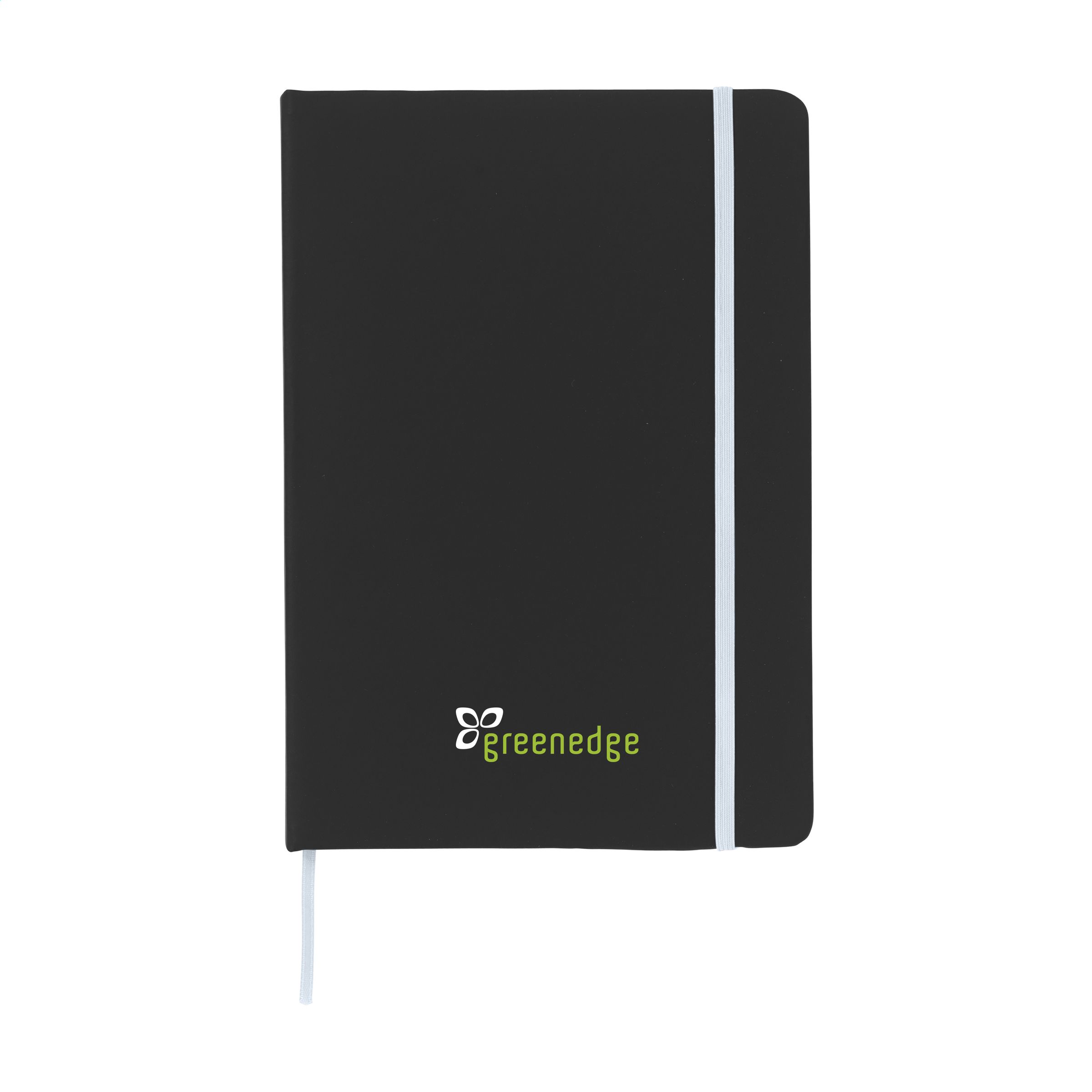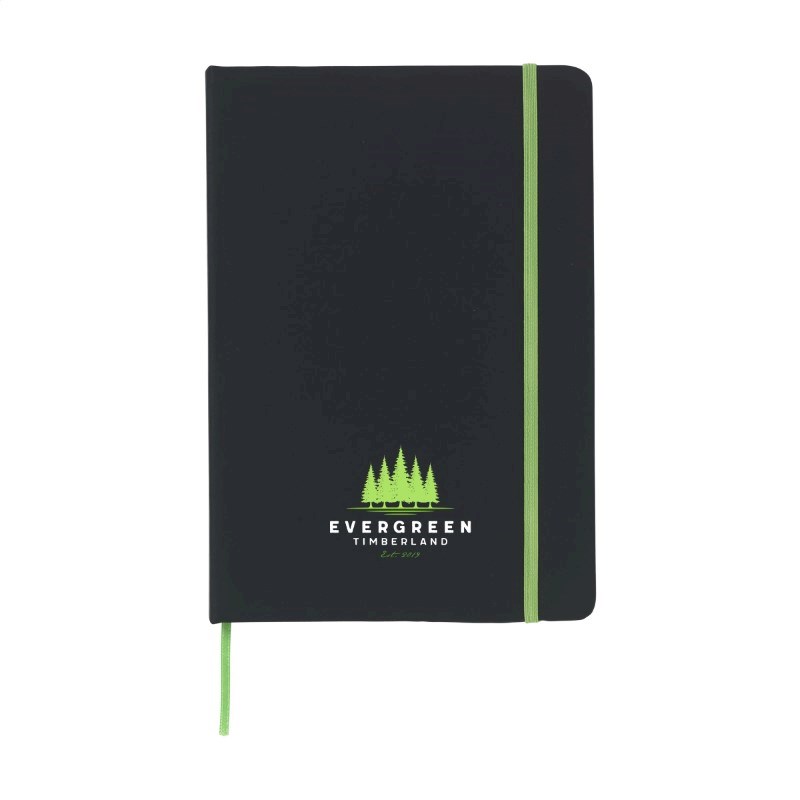 Praktisch en handzaam notitieboekje in A5 formaat. Met 80 vel crèmekleurig gelinieerd papier, stevige PU cover, elastische sluiting, gebonden rug en zijden leeslint.