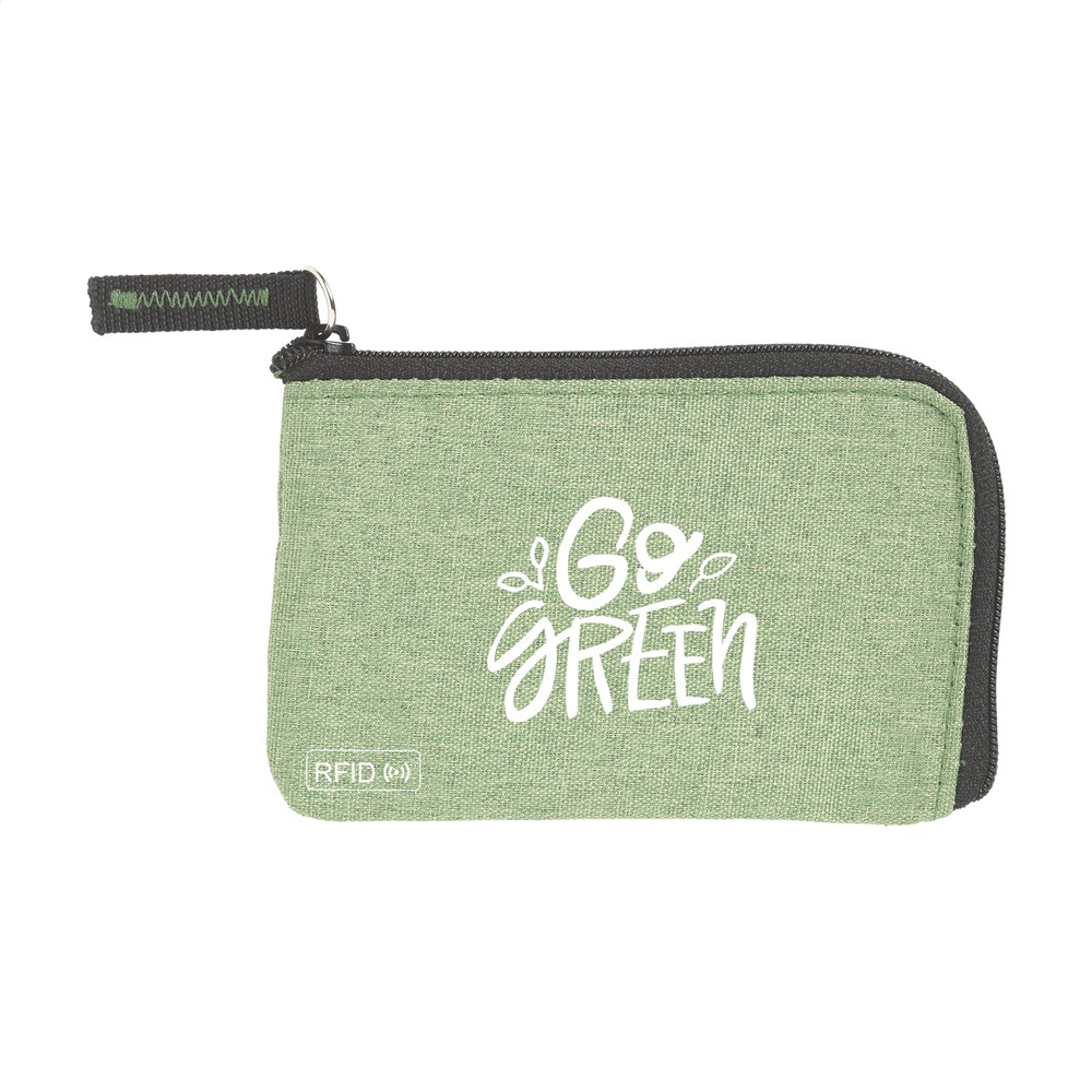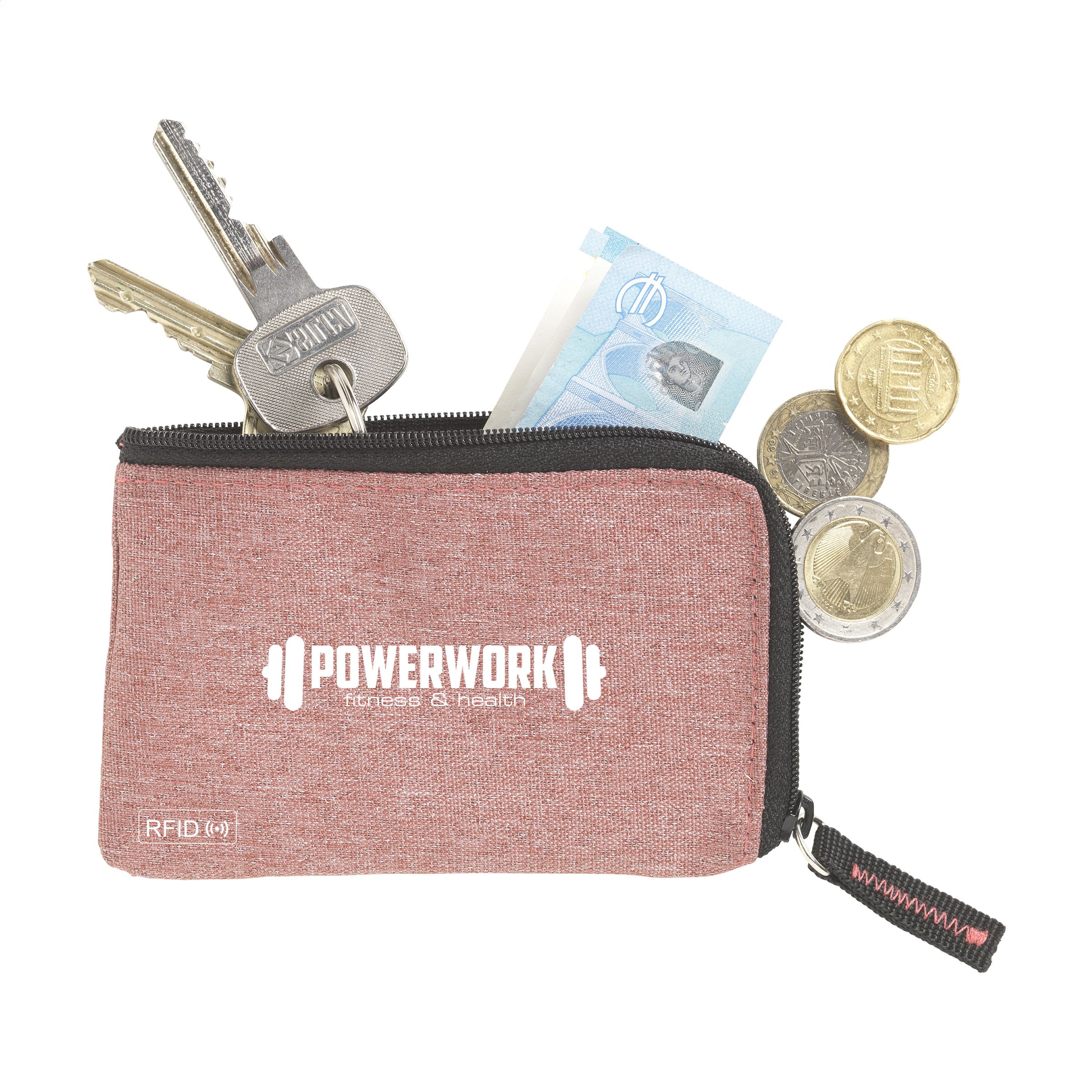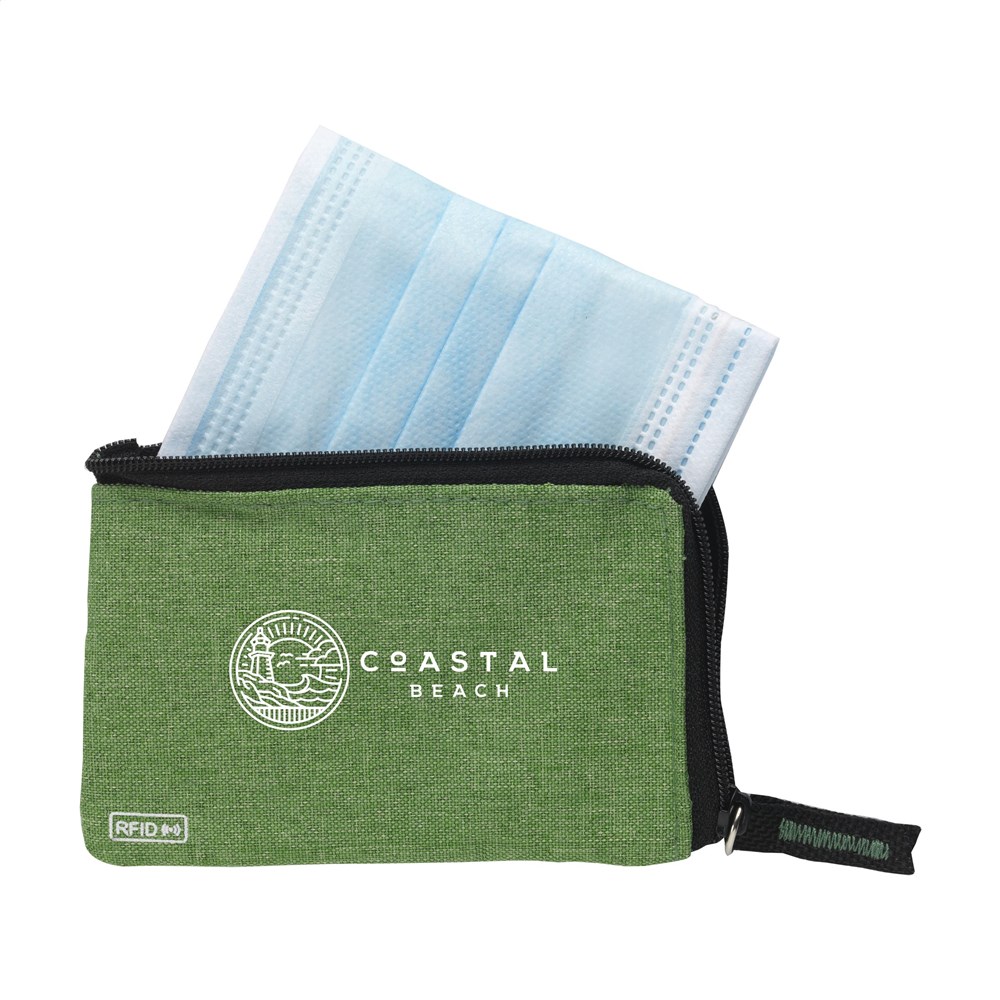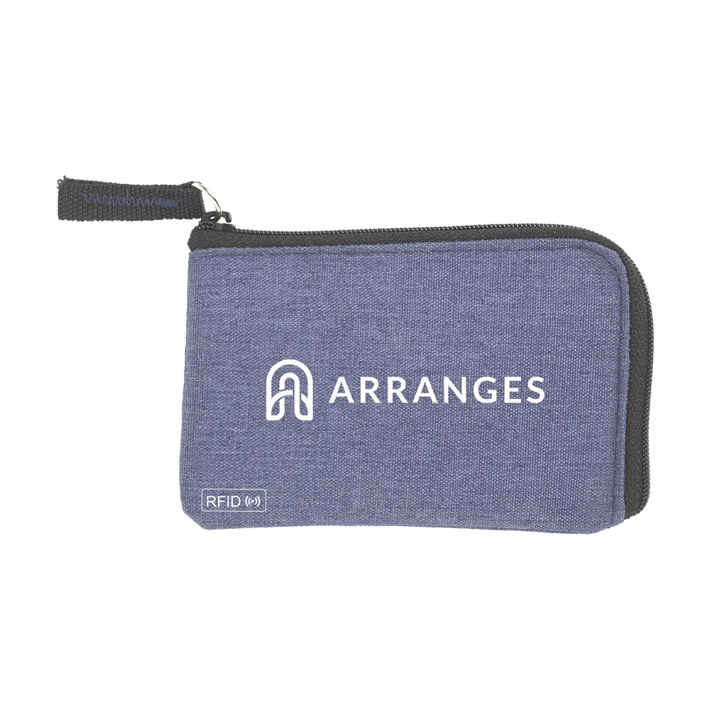 RFID sleutelbeurs van geweven polyester, nylon gevoerd. Met rits, RVS sleutelring en extra insteekvak voor pasjes. De RFID beschermingstechnologie beschermt de pasjes tegen skimmen en identiteitsdiefstal. Ook geschikt als opbergetui voor het veilig meenemen van een mondkapje.