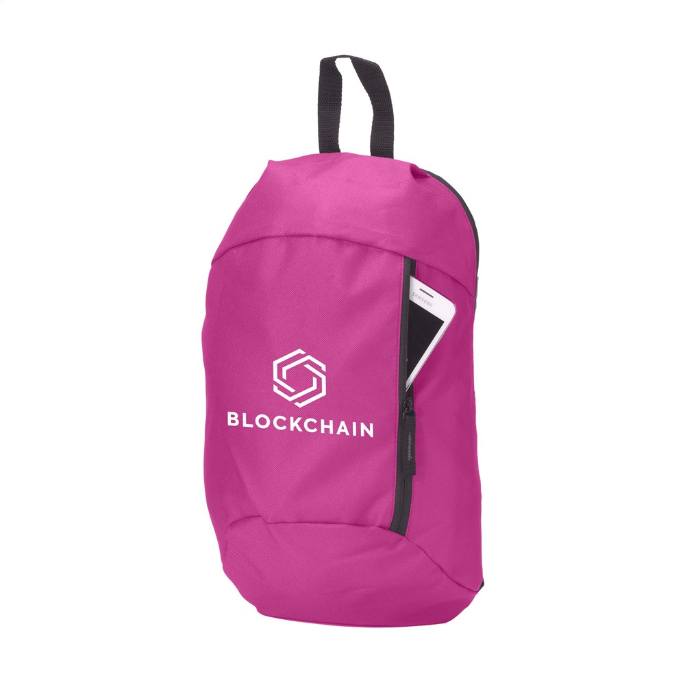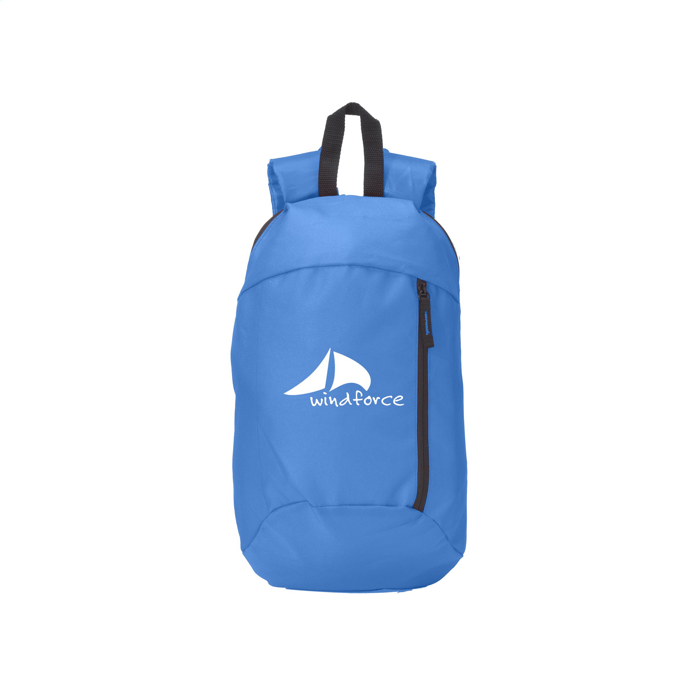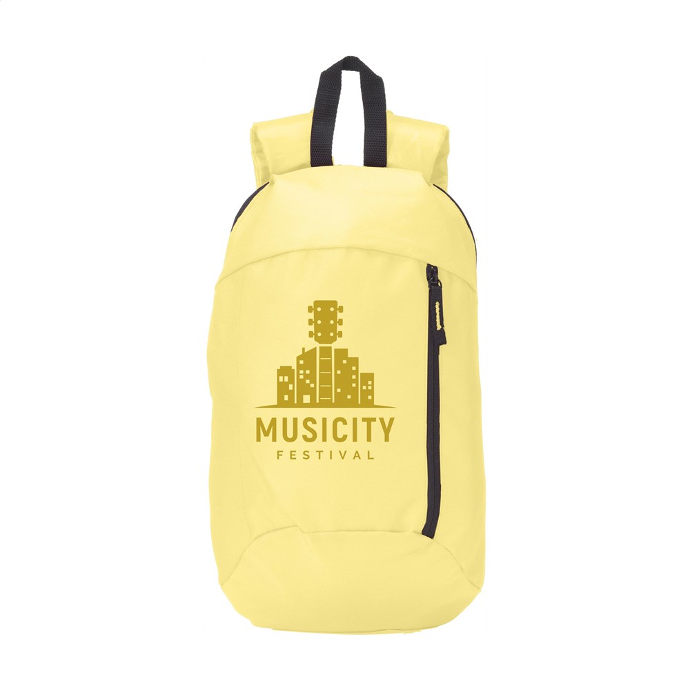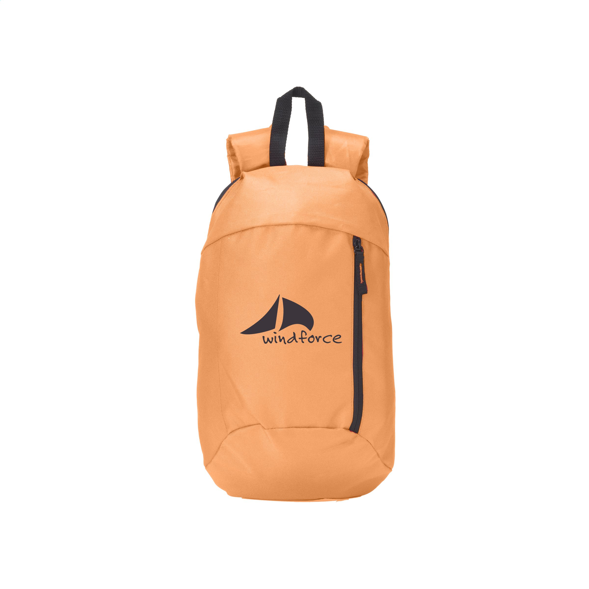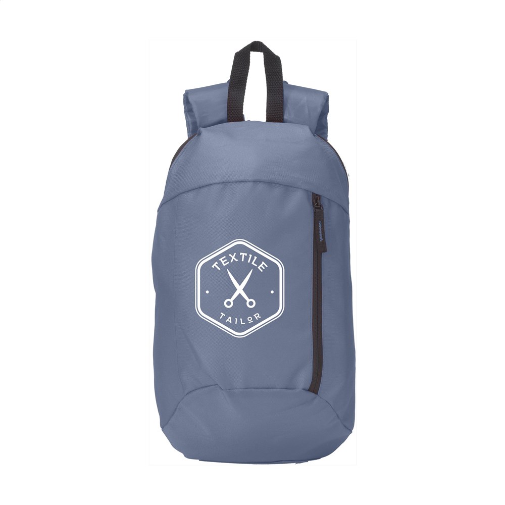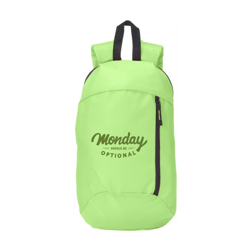 Superlichte, polyester rugzak met ruim hoofdvak, voorvak met rits, gewatteerde rugzijde, verstelbare gewatteerde schouderriemen en draaglus. Inhoud ca. 8 liter.