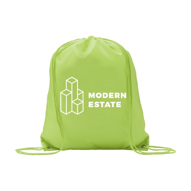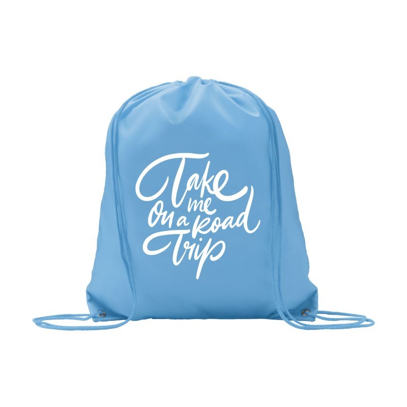 Rugzak van 210D polyester. Met aanrijgkoord. Inhoud ca. 8 liter.