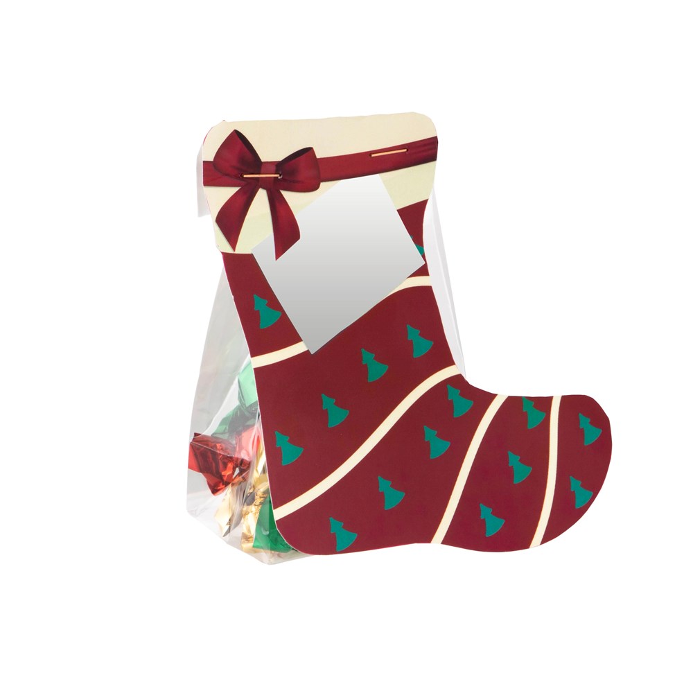 Stazakje met Kerstsokkaart, gevuld met 50 gr. metallic sweet