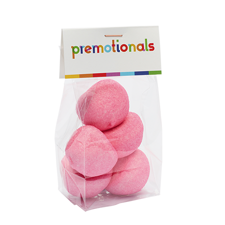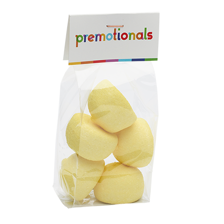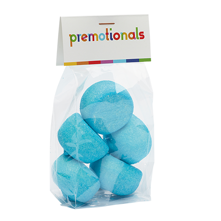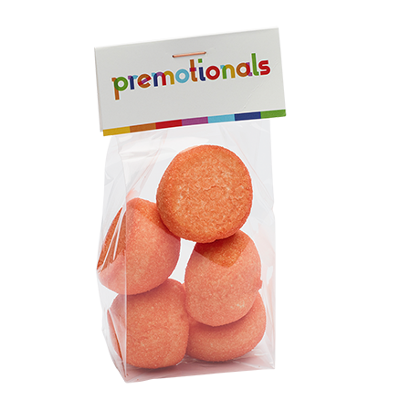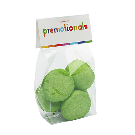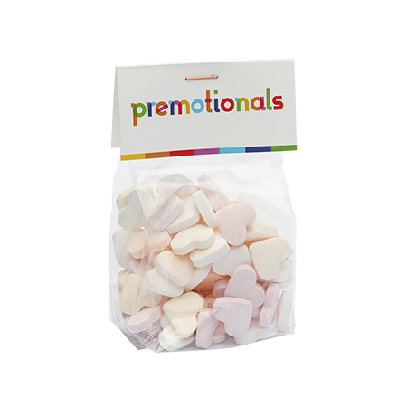 PP Blokbodemzakje 60/22x20x200 mm gevuld met snoep categorie Basis, met tot in full colour bedrukt kopkaartje
