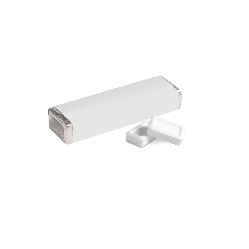 Vierkant "rolletje" pepermunt full colour bedrukt met 12 pepermuntjes, ca. 10 gr