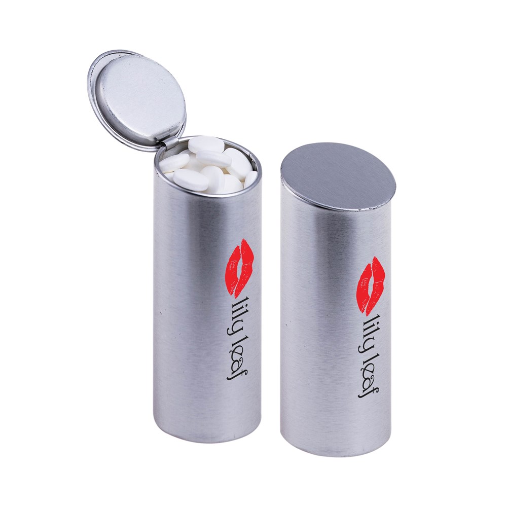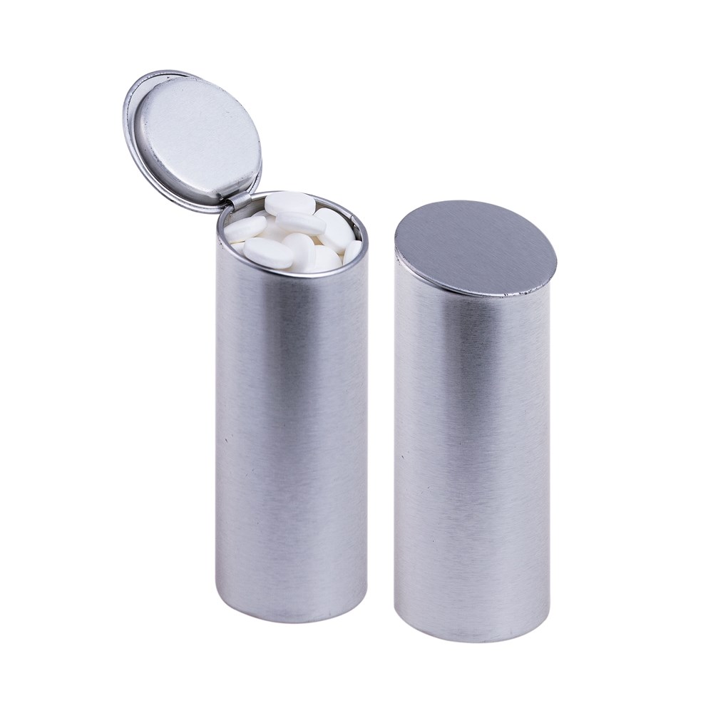 Bedrukt koker blikje zilver met ca. 34 gr. pepermunt
