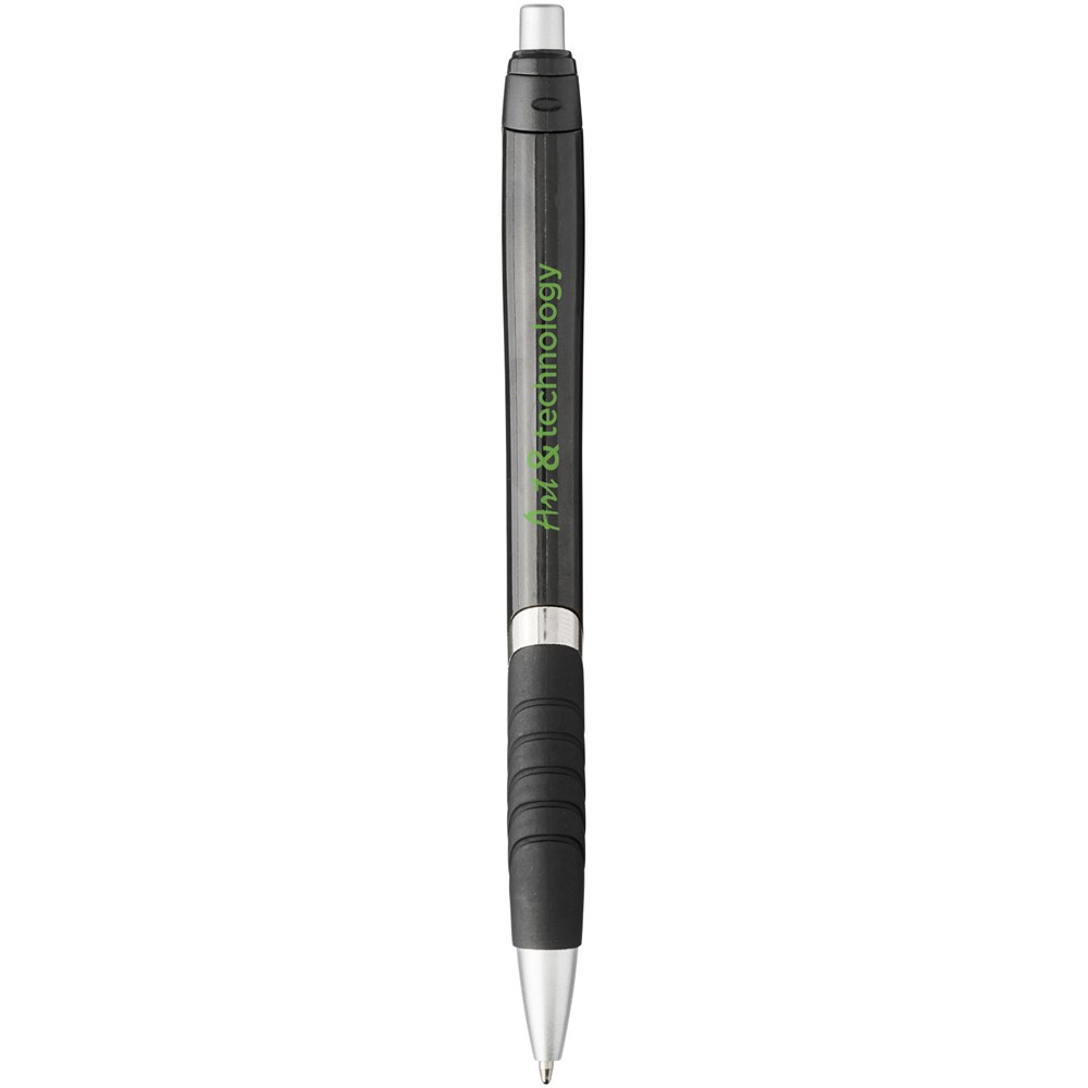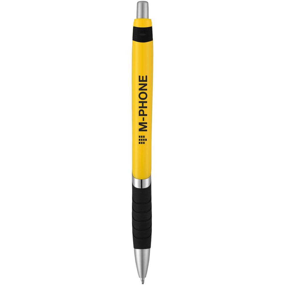 Populaire balpen met klikmechanisme en effen gekleurde huls, zwarte rubberen grip en extra zilveren accenten. Verkrijgbaar in diverse aantrekkelijke kleuren.