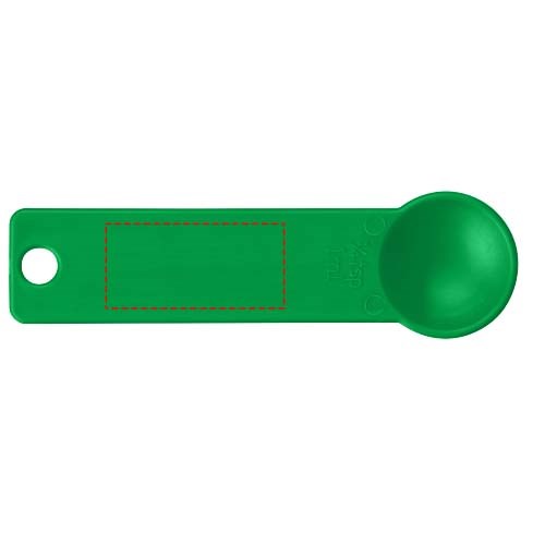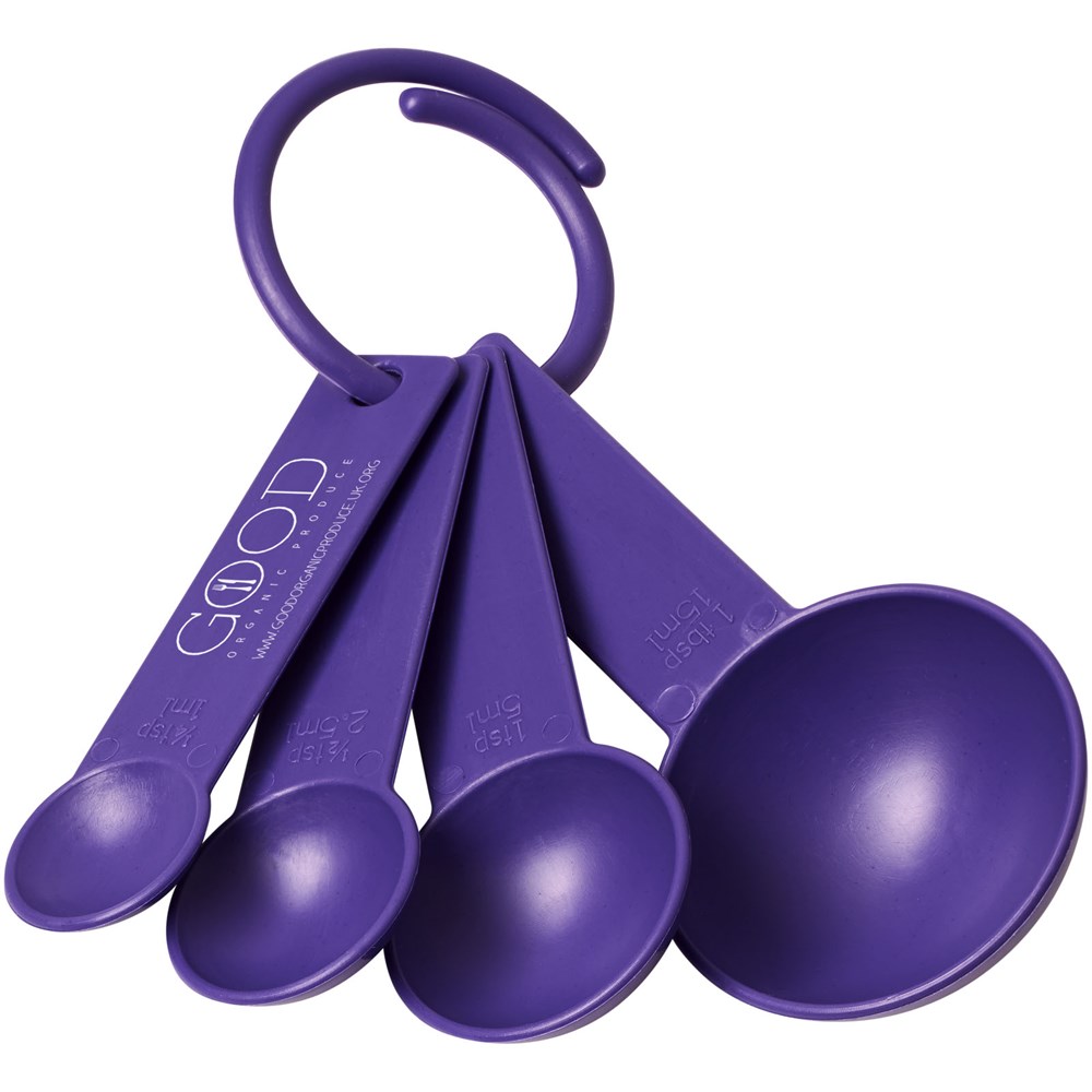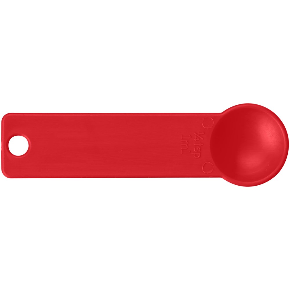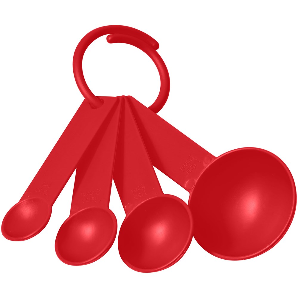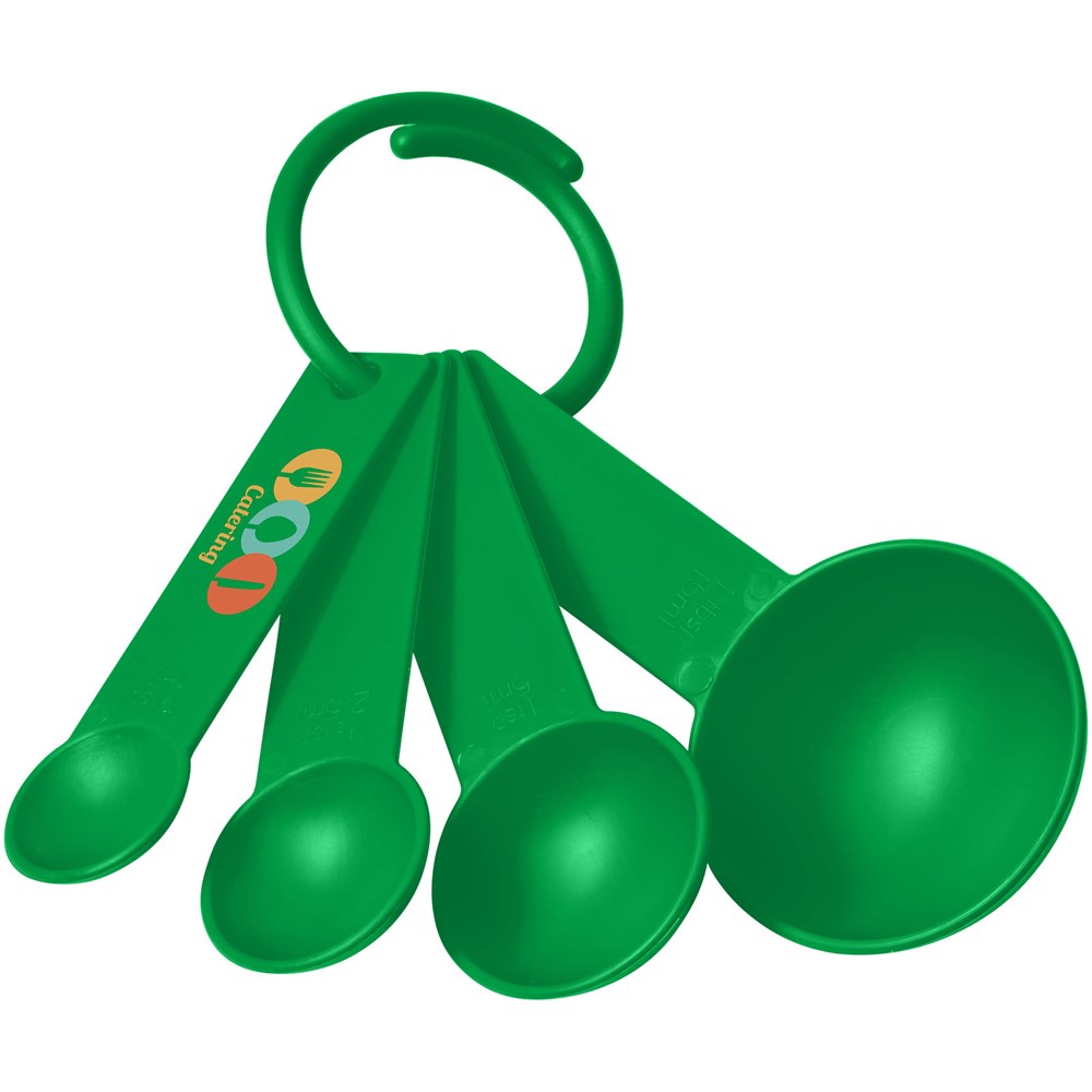 Een set van vier maatlepels, allemaal bevestigd aan een ring. De set bestaat uit 1/4 theelepel, 1/2 theelepel, 1 theelepel en 1 eetlepel. Verkrijgbaar in diverse kleuren.
