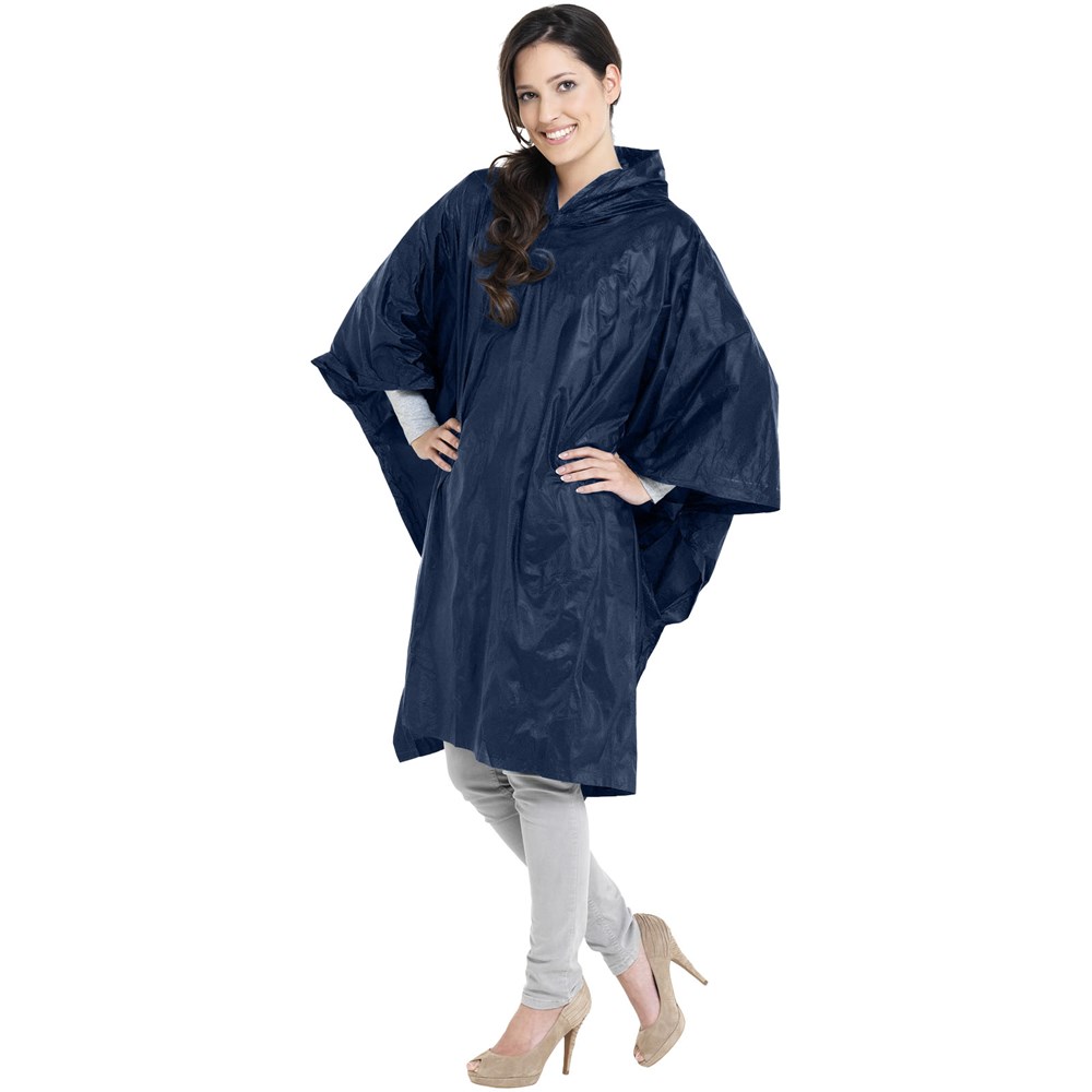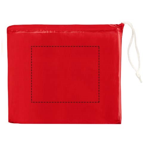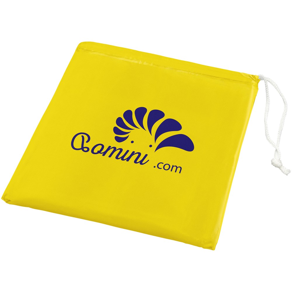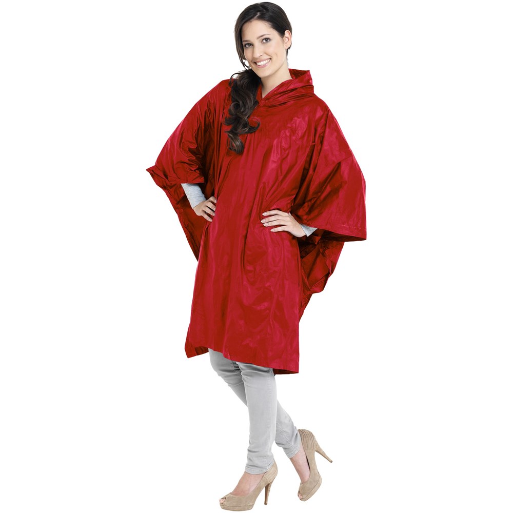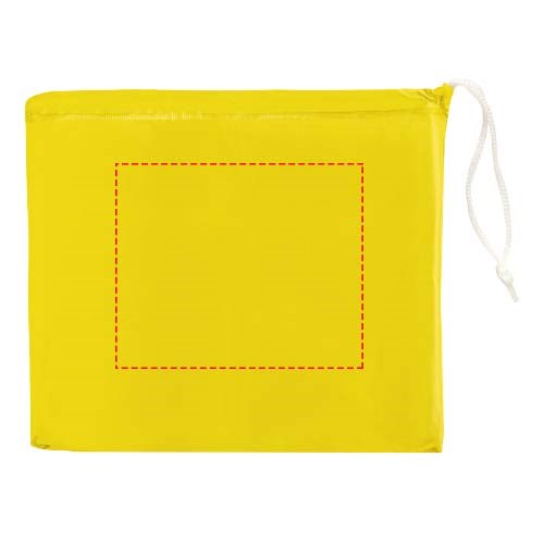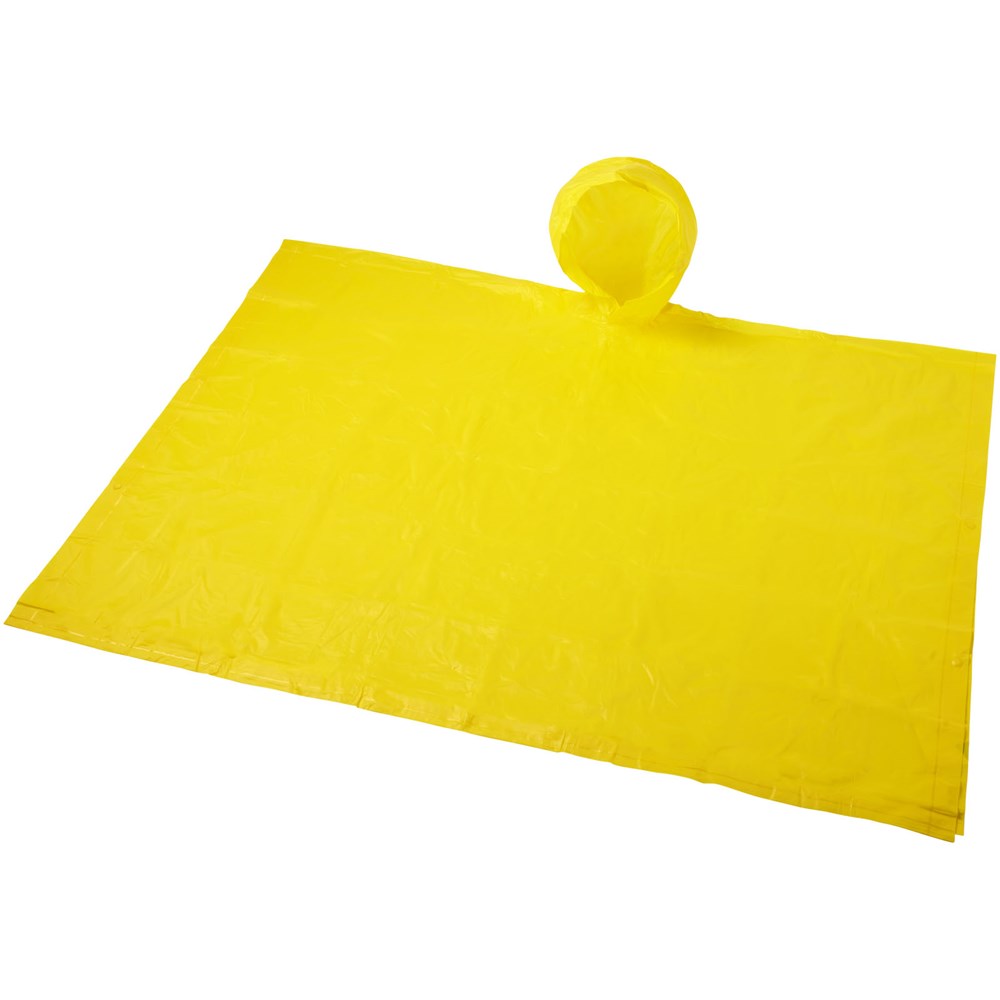 Een opvouwbare poncho met capuchon voor onverwachte regenbuien bij elke buitenactiviteit. De herbruikbare poncho is 100x130 cm groot, en heeft knoopsluitingen aan beide zijden. Verkrijgbaar in de meest diverse kleuren en met een groot decoratievlak op het zakje.