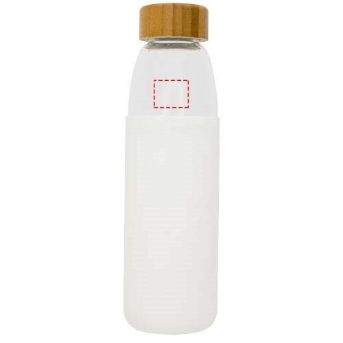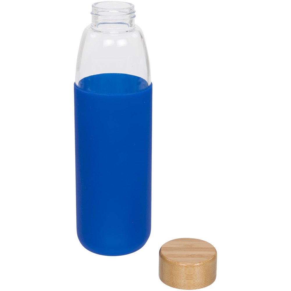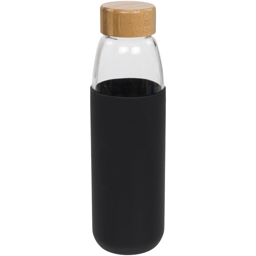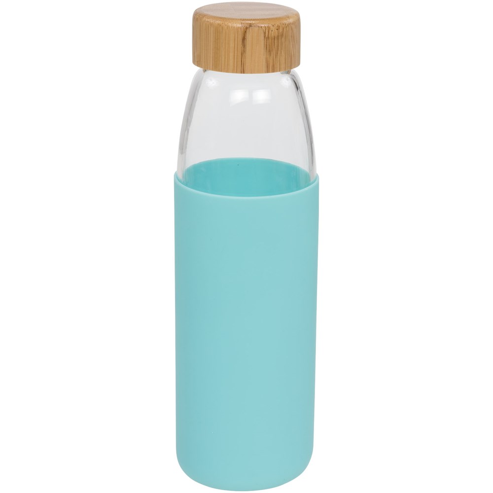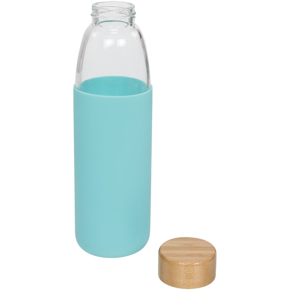 Enkelwandige, BPA-vrije borosilicaat glazen fles verpakt in een siliconen hoes met zachte greep. Bevat een bamboe schroefdeksel en anti-slip onderkant. Niet geschikt voor de vriezer of magnetron. Volume 540ml. Gepresenteerd in een Avenue geschenkverpakking.