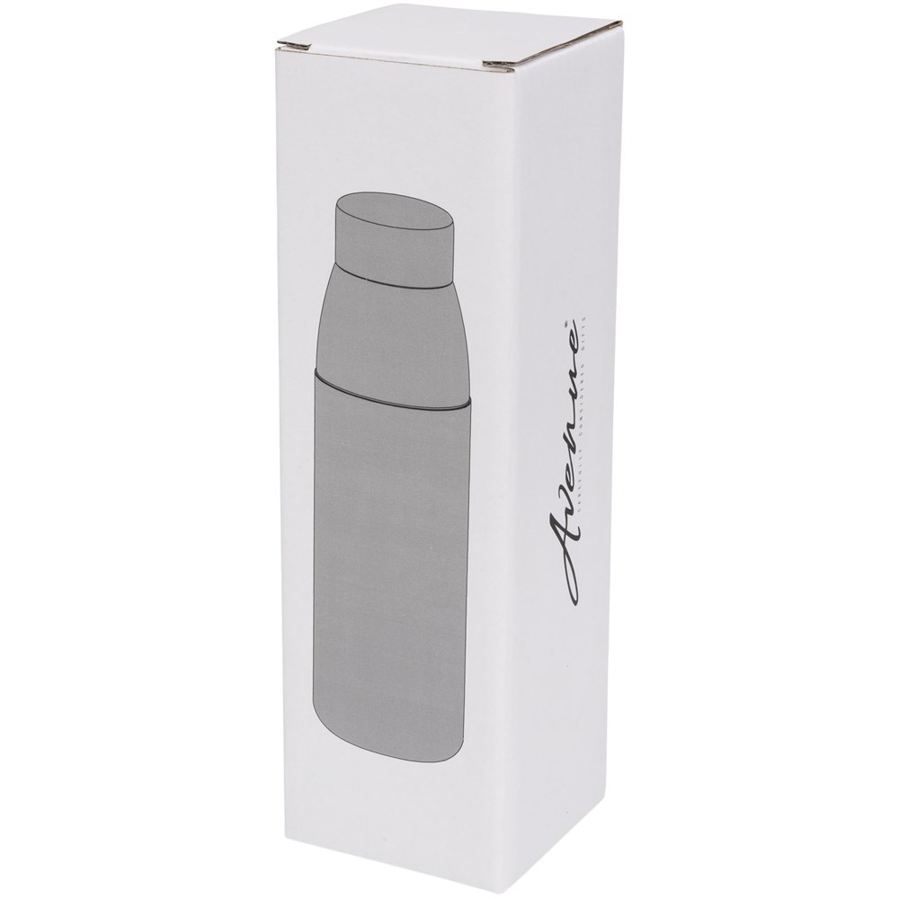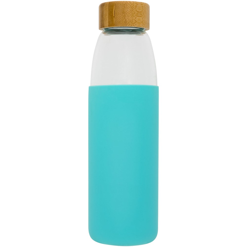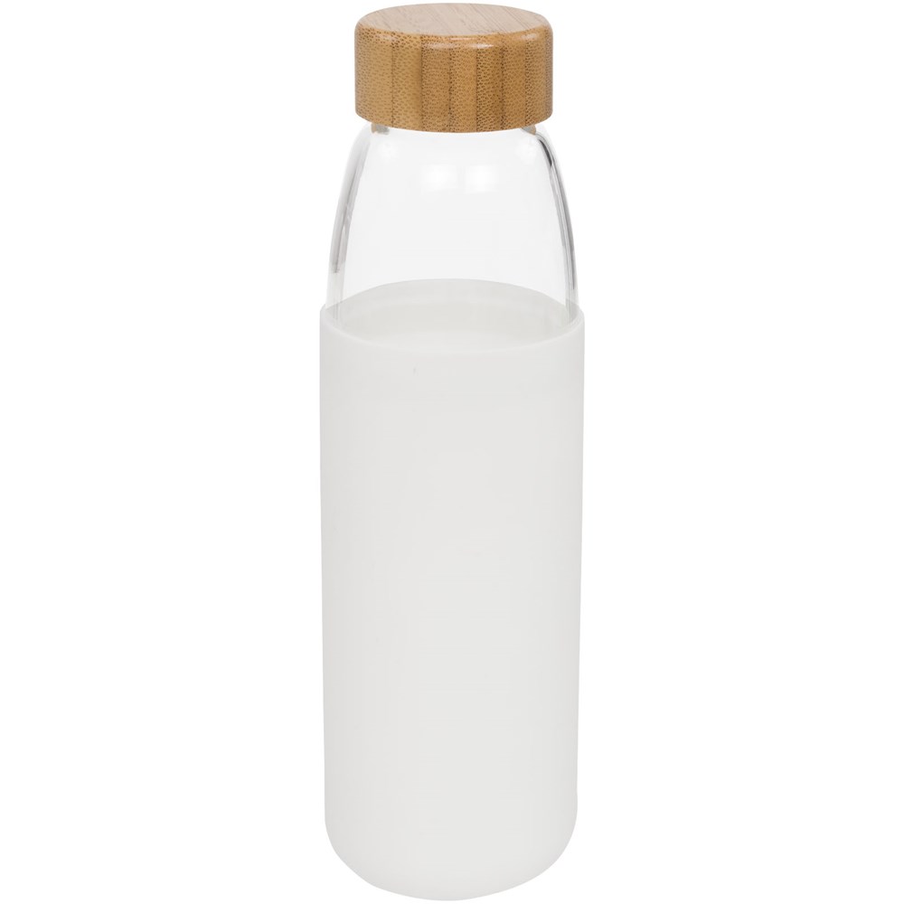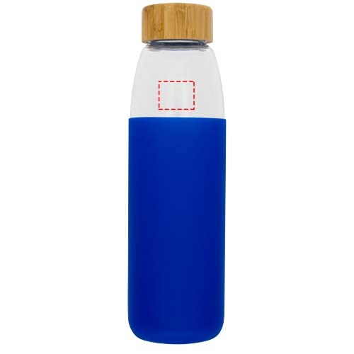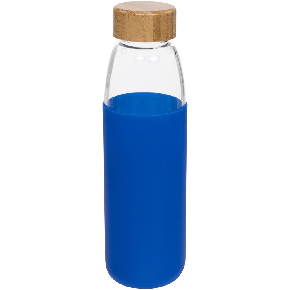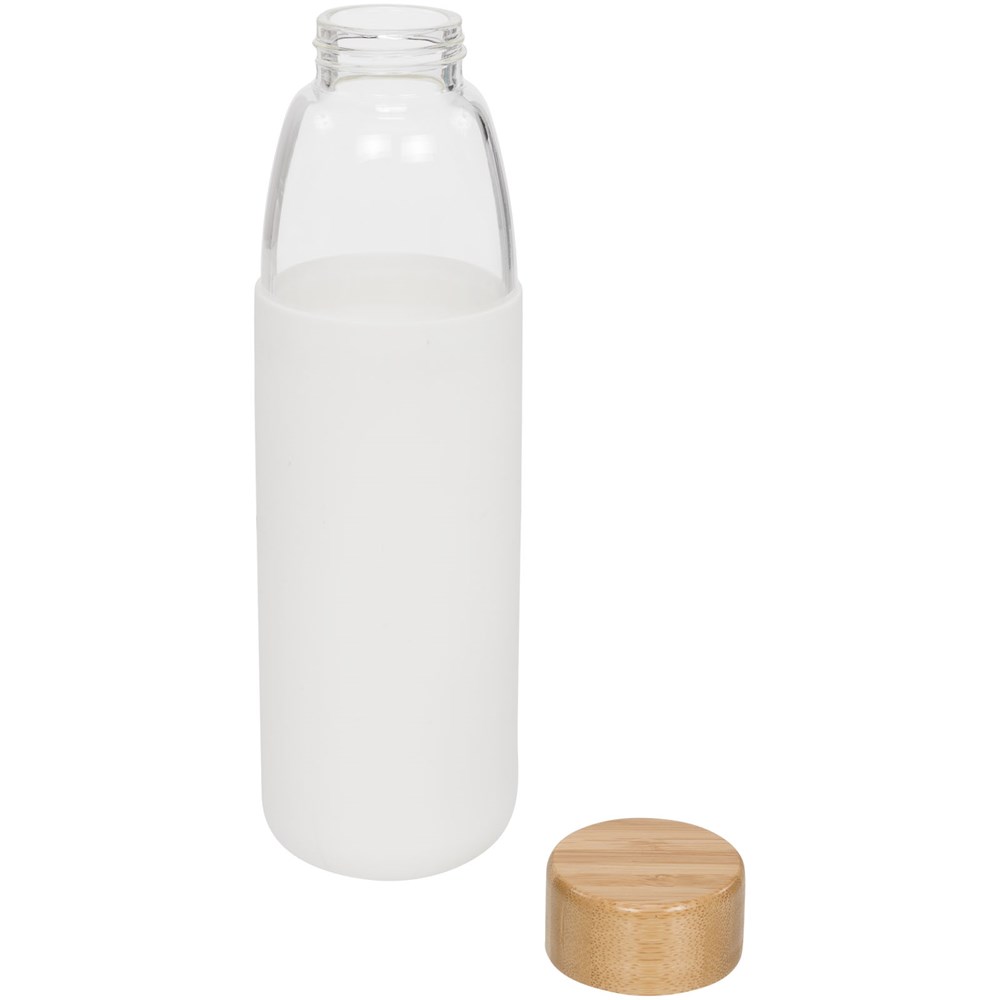 Enkelwandige, BPA-vrije borosilicaat glazen fles verpakt in een siliconen hoes met zachte greep. Bevat een bamboe schroefdeksel en anti-slip onderkant. Niet geschikt voor de vriezer of magnetron. Volume 540ml. Gepresenteerd in een Avenue geschenkverpakking.