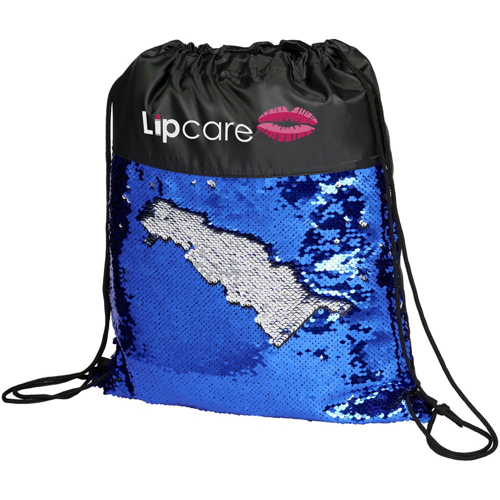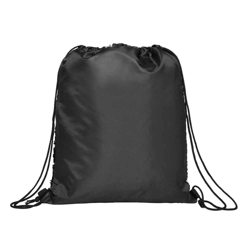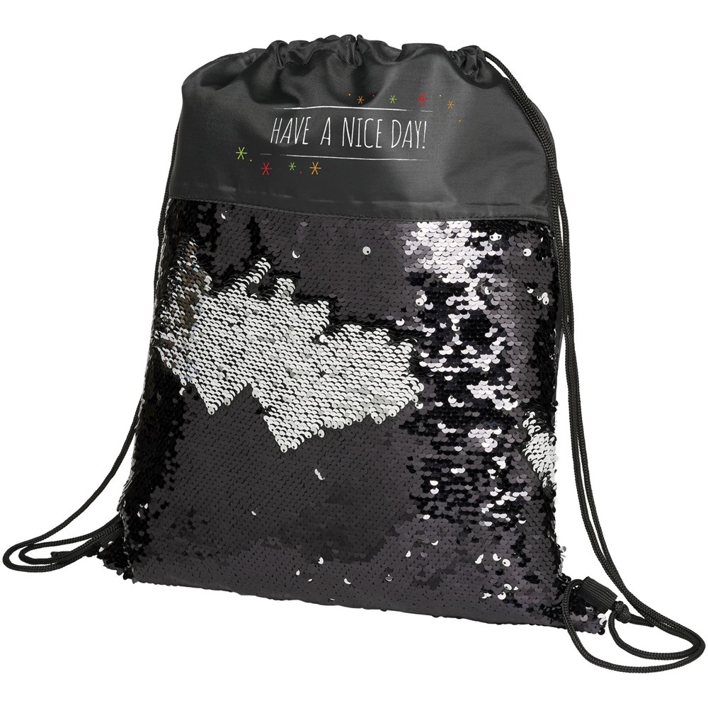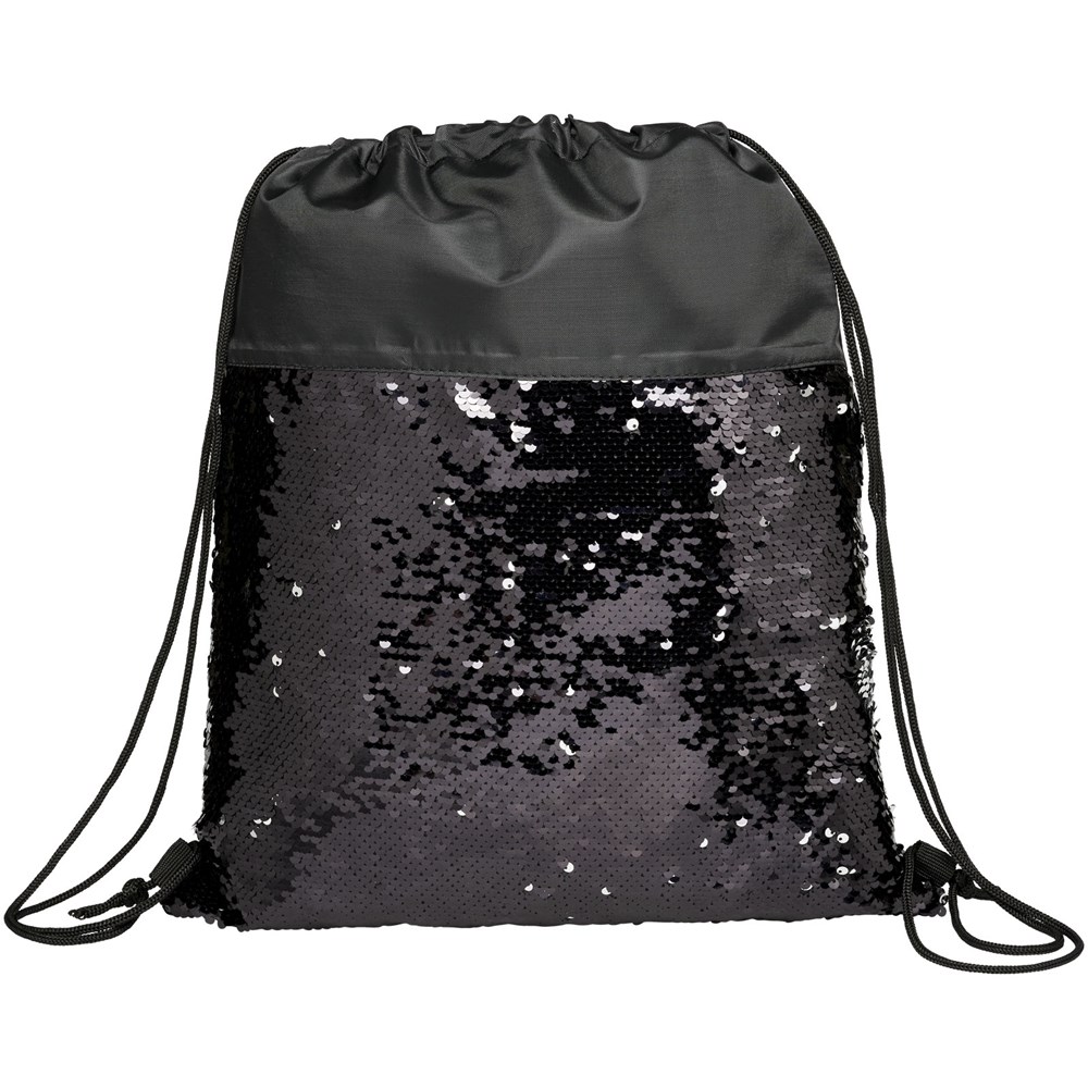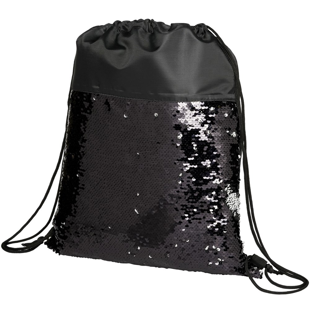 Opvallende met pailletten versierde rugzak met trekkoordje die kan worden omgedraaid om 2 kleuren te tonen. Voorzien van een open hoofdcompartiment met een cinch sluiting.