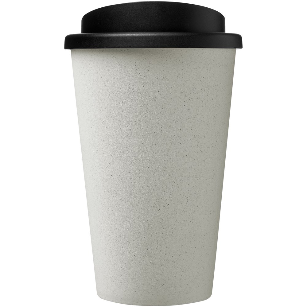 Dubbelwandige, geïsoleerde beker met draaideksel De drinkbeker is gemaakt van 100% gerecycled PP-kunststof en het deksel is gemaakt van voedselveilig PP-kunststof. Omdat het deksel niet is gemaakt van gerecycled materiaal kan het besteld worden in een brede variatie aan kleuren. De zwarte kleur van de beker kan variëren door de aard van het gerecyclede materiaal. Volumecapaciteit is 350 ml. Gemaakt in de UK. Verpakt in een thuiscomposteerbare zak.