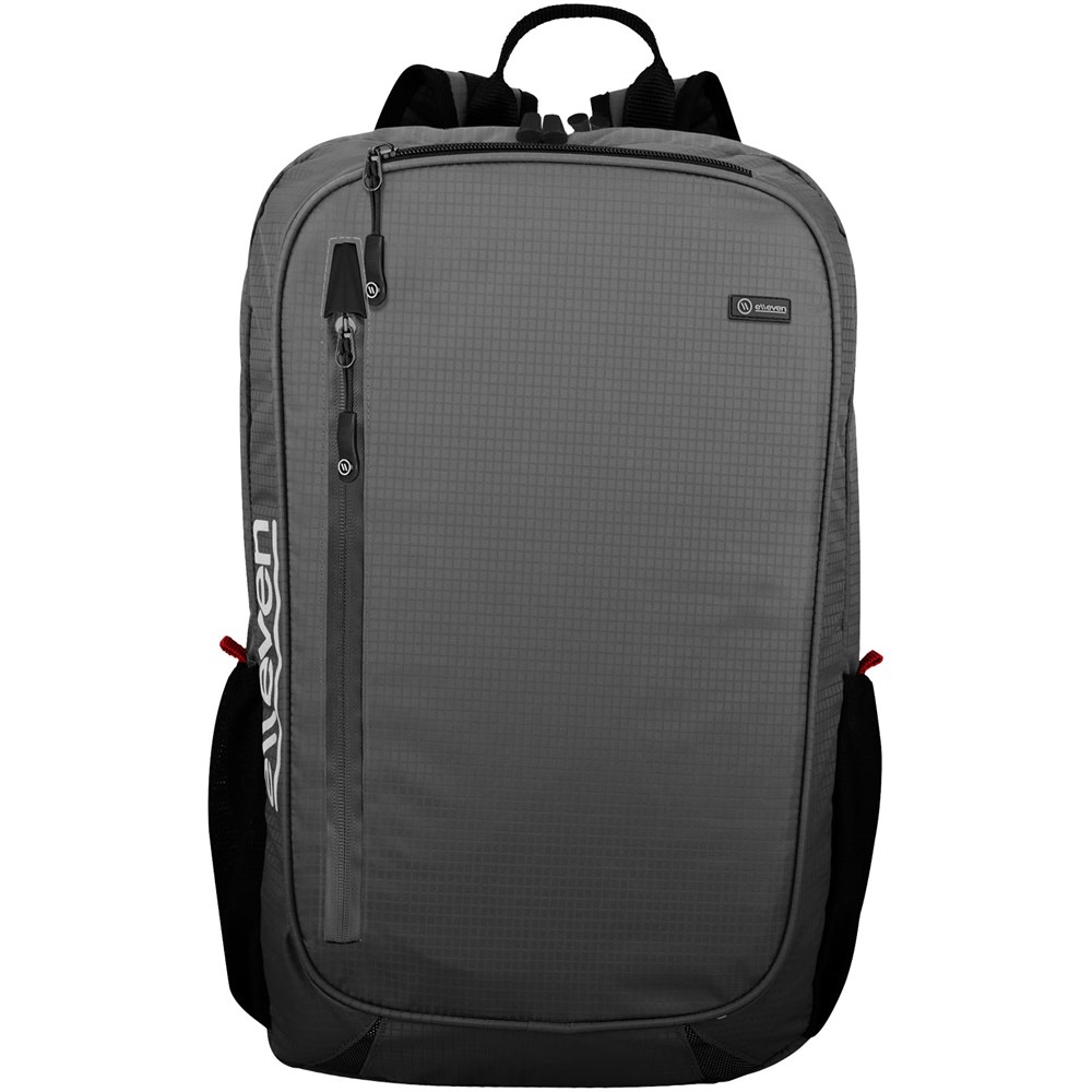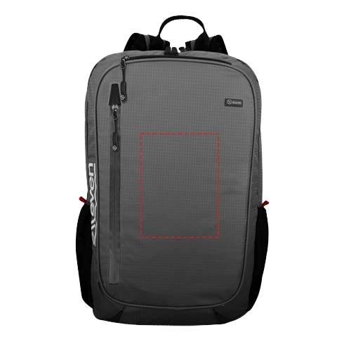 Deze rugzak is ontworpen om je last aanzienlijk te verlichten, zonder dat de dingen die je nodig hebt thuis moet laten. De tas is gemaakt van dobby nylon met een waterdichte voering en heeft subtiele accenten van reflecterend materiaal, plus een reflecterend Elleven logo voor betere zichtbaarheid in het donker. Het verticale voorvak met waterdichte ritssluiting past perfect bij het totale design. Het grote hoofdvak heeft een meerlaags opbergvak aan de voorkant en een gevoerd compartiment met ritssluiting aan de achterkant voor een 15.6” laptop. De tas is zo licht als een veertje en tegelijkertijd comfortabel te dragen dankzij de combinatie van lichtgewicht stof- en gaasbanden en de gevoerde gaasrug. De faux suede logoband op een van de schouderbanden doet ook dienst als brillenetui. Trolleyband aan de achterzijde. Twee gaasvakken aan de buitenkant voor grote waterflessen of andere spullen.
