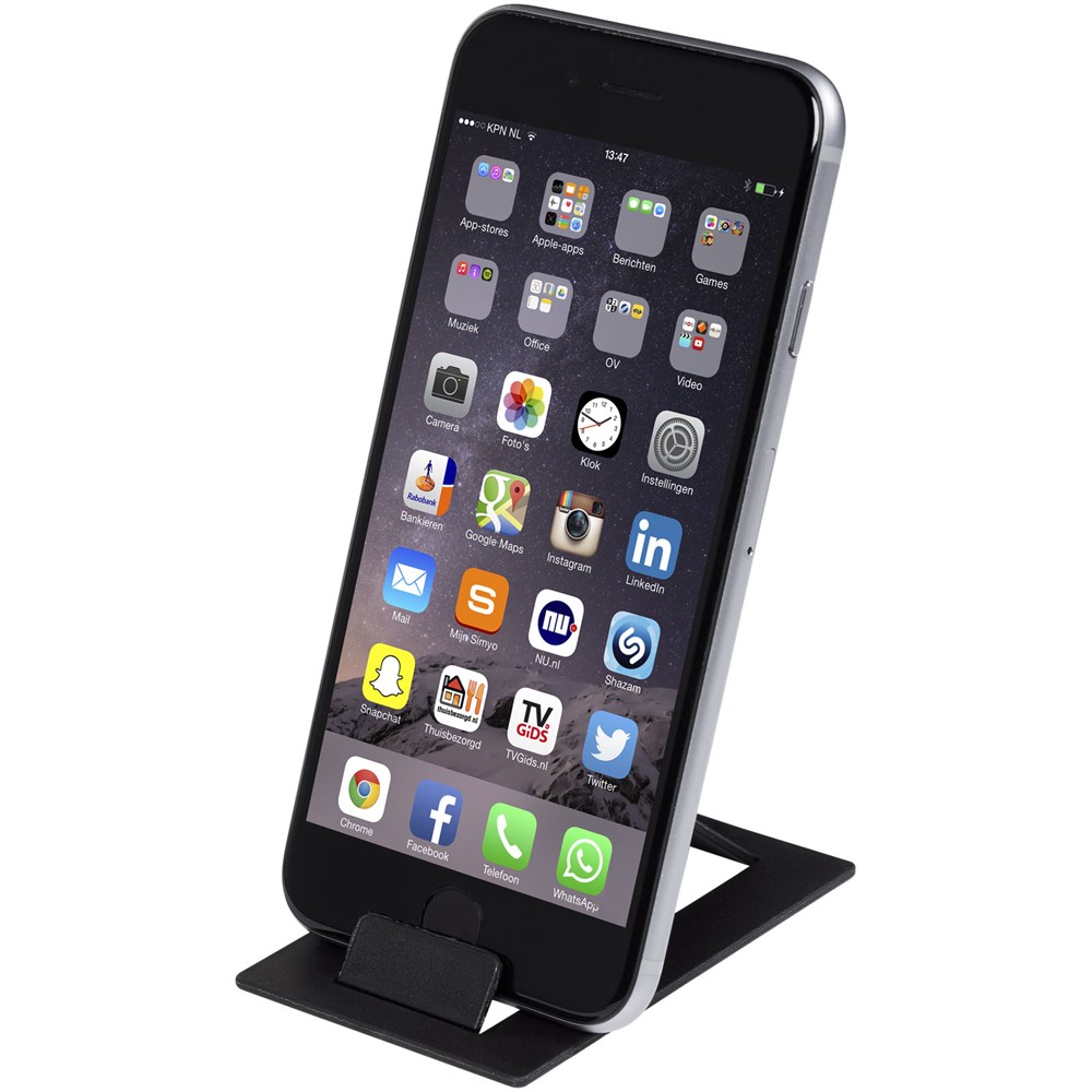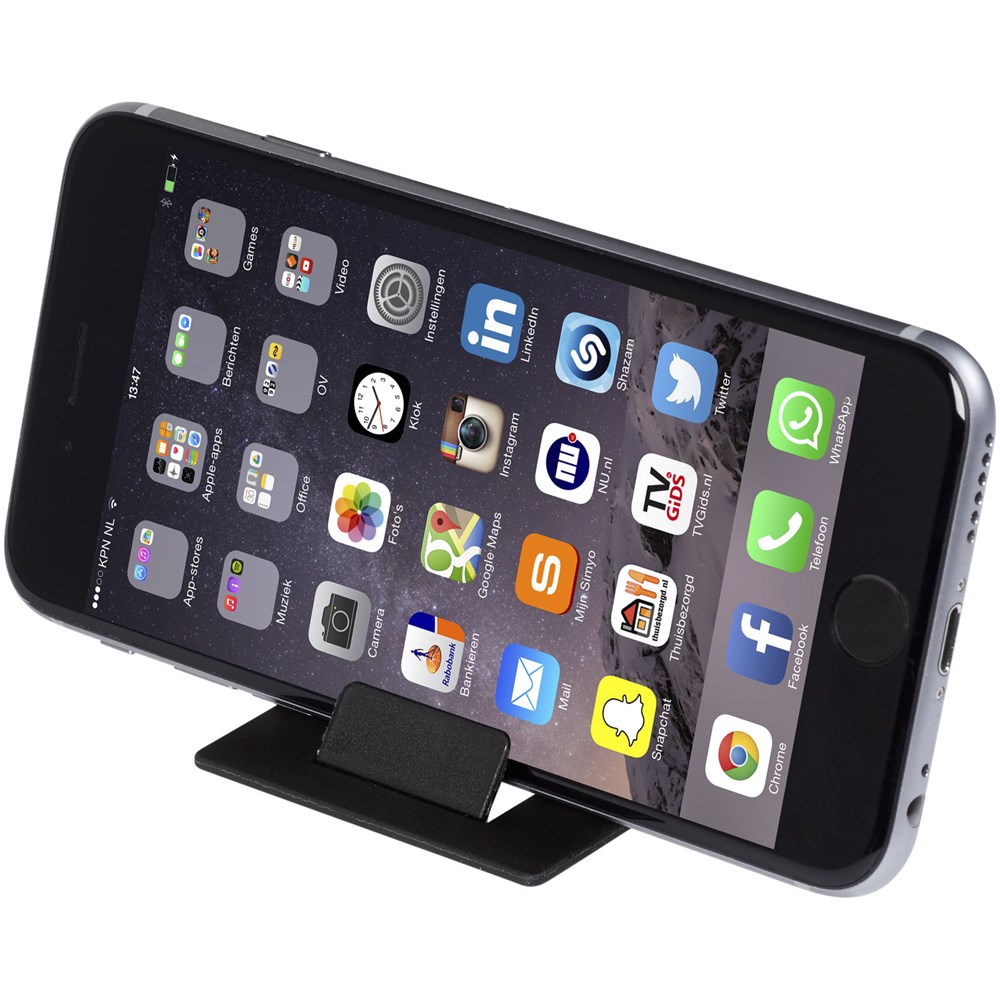 De Hold opvouwbare telefoonstandaard is een zeer kleine multimediahouder. Doordat hij de vorm van een creditcard heeft past hij in de meeste portemonnees. Hij is stabiel en stevig, en opent altijd in de juiste hoek voor een perfect zicht op het scherm van je smartphone. Bijna het gehele oppervlak is bedrukbaar, waardoor hij perfect is voor decoraties. Geproduceerd in de EU.