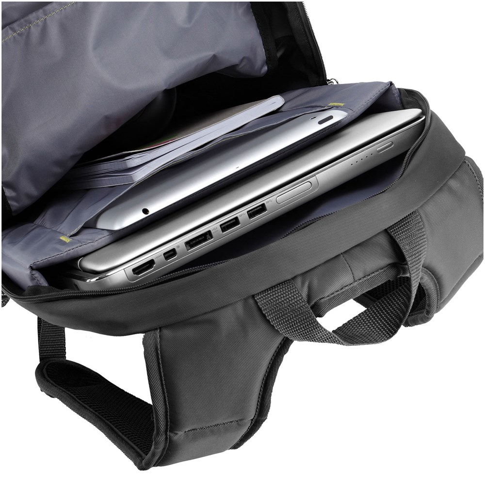 Geïntegreerd 15.6” laptopvak, tablethoes en binnenvakje voor kabels en kleine elektronische apparatuur - veilig opgeborgen en toch goed bereikbaar. Quick-access voorvak voor spullen die je altijd bij de hand wilt hebben en organizerpaneel voor accessoires.