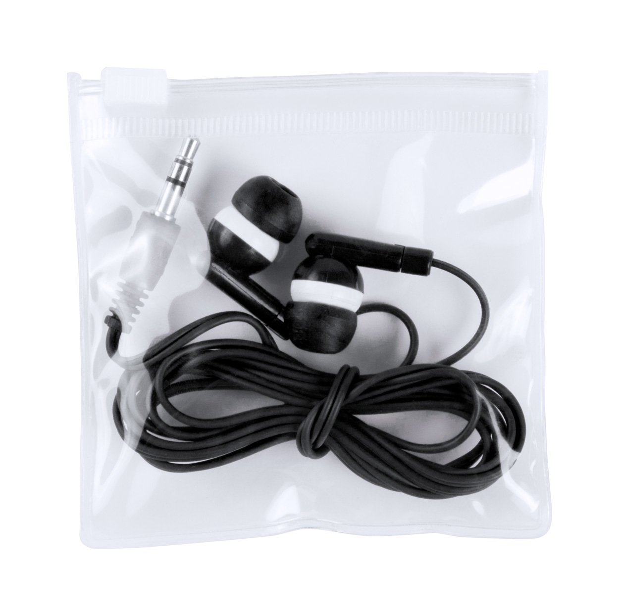 Ordopjes met 3,5 mm audio-aanstluiting in transparante PVC tas met rissluiting.