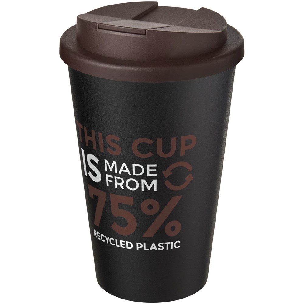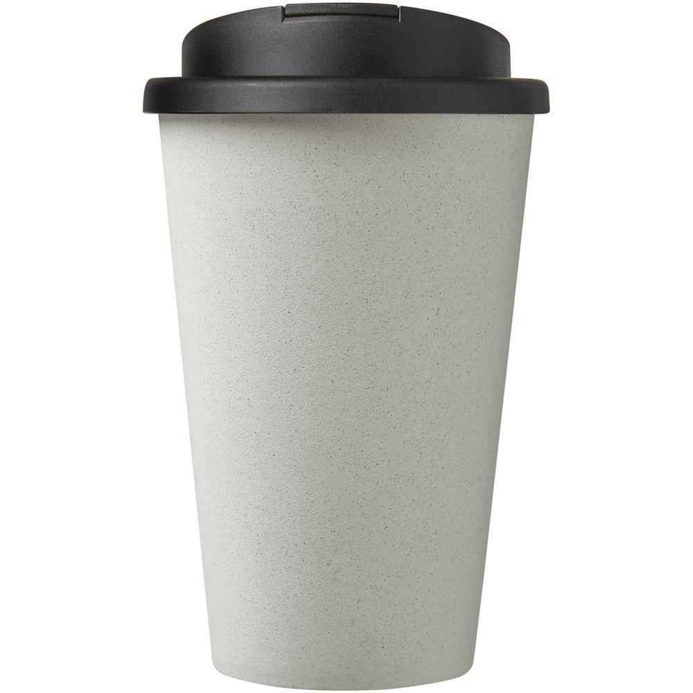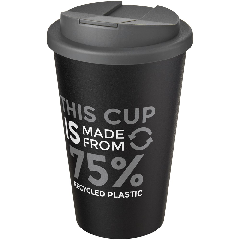 Dubbelwandige geïsoleerde beker met een spill-proof deksel. Deksel is vervaardigd zonder siliconen voor een volledig recyclebare drinkbeker. De beker is gemaakt van 100% gerecycled PP-kunststof en het deksel is gemaakt van voedselveilig PP-kunststof. De inhoud is 350 ml. De zwart en wittint kunnen variëren als gevolg van de aard van het gerecyclede materiaal. Geleverd in een thuiscomposteerbare polybag. Gemaakt in het Verenigd Koninkrijk.