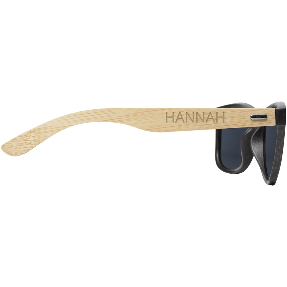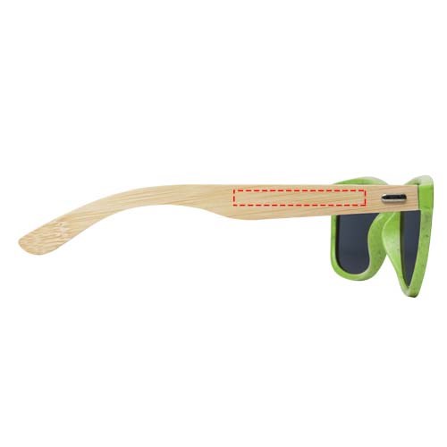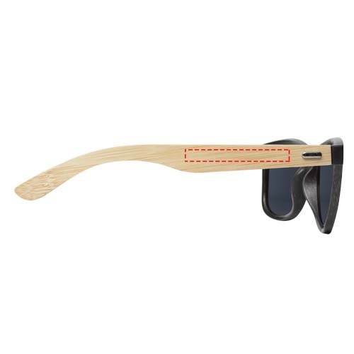 Deze duurzame retro-ontworpen zonnebril is het ideale relatiegeschenk tijdens zomerfestivals, evenementen of andere zonnige buitenactiviteiten. Het frame is gemaakt van een mix van plastic en bamboe, waardoor het gebruik van nieuwe kunststoffen wordt verminderd. Hij is verkrijgbaar in verschillende trendy kleuren. De armen met een lichte en comfortabele pasvorm zijn gemaakt van bamboe dat afkomstig is van duurzame, milieuvriendelijke en maatschappelijk verantwoorde bronnen. Deze bril voldoet aan EN ISO 12312-1, heeft UV400-glazen die zijn geclassificeerd als categorie 3, waardoor het de perfecte keuze is voor bescherming tegen fel zonlicht. Lasergraveren wordt aanbevolen als een duurzame decoratieoptie.