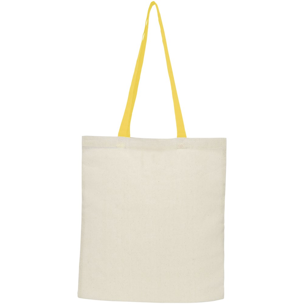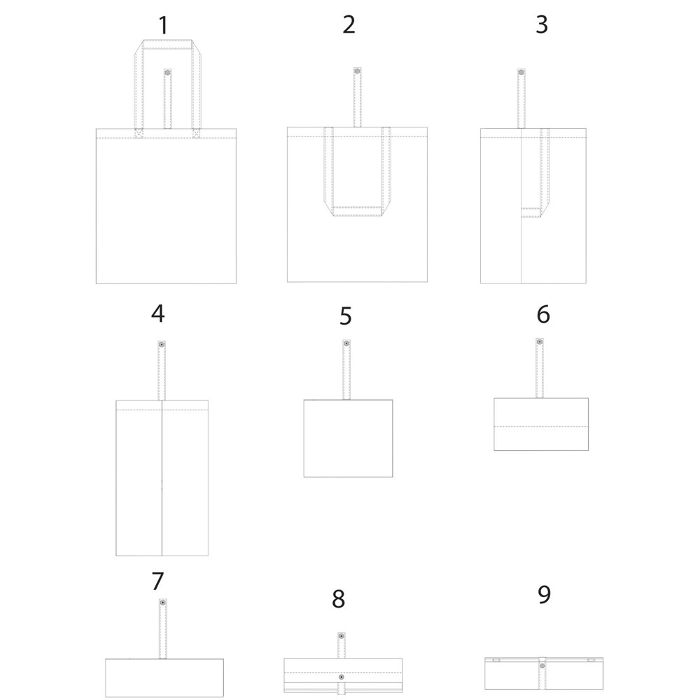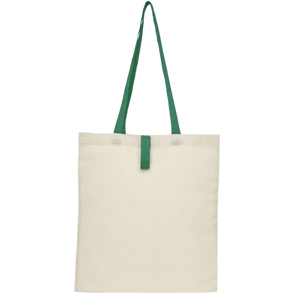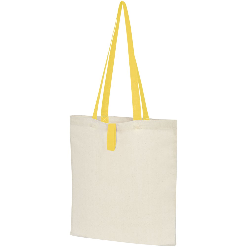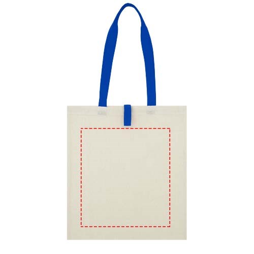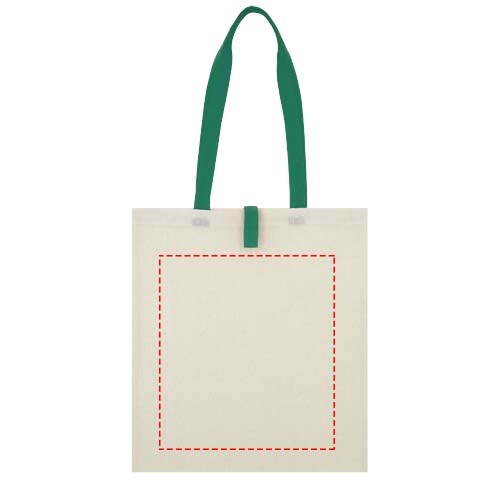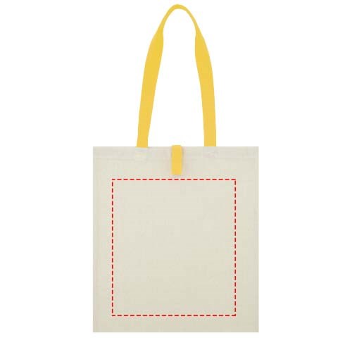 Draagtas met een open hoofdvak en gekleurde hengsels met een dropdown hoogte van 32 cm. Voorzien van een bandje met knoopsluiting om de tas gevouwen te houden. Geschikt voor een gewicht tot 8 kg.