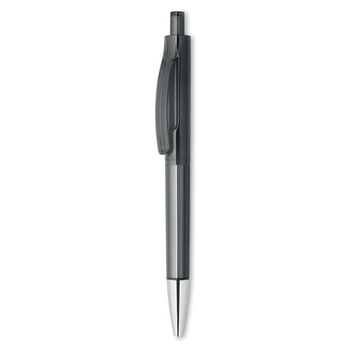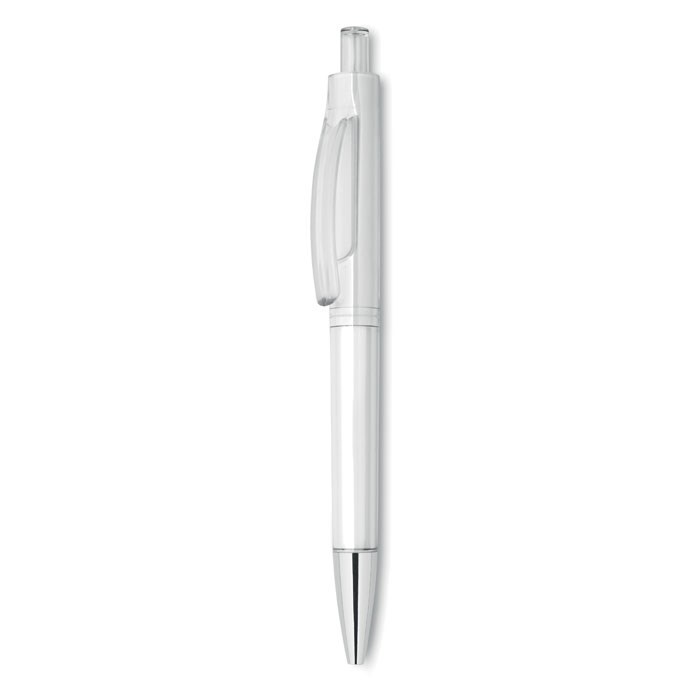Balpen met drukmechanisme en transparante details. Blauwe inkt.