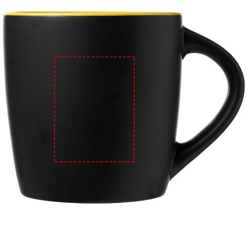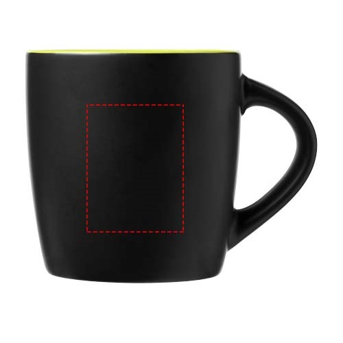 Keramieke mok met een inhoud van 340 ml met matte buitenkant en gekleurde binnenkant. EN 12875-1 compliant, Vaatwasmachine bestendig. Geleverd in een witte geschenkverpakking.