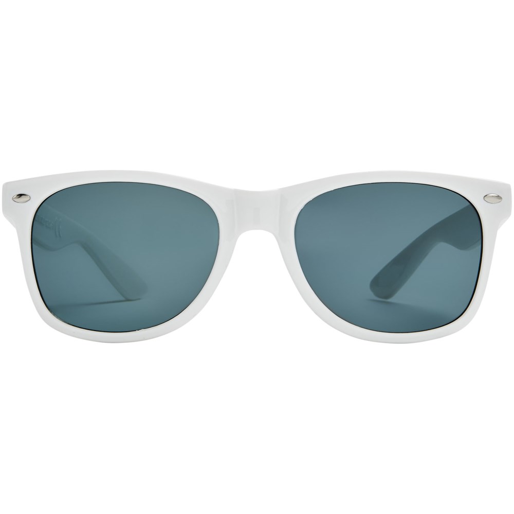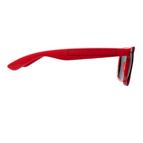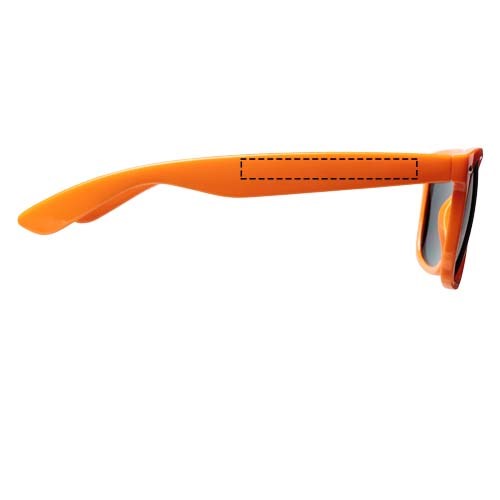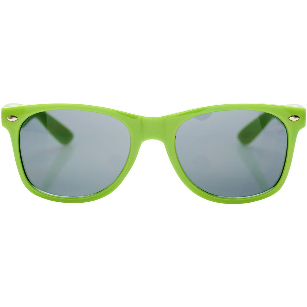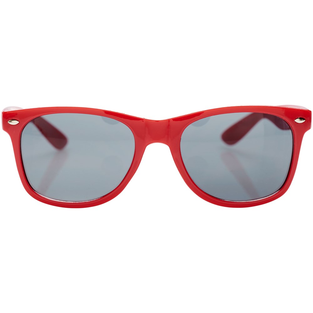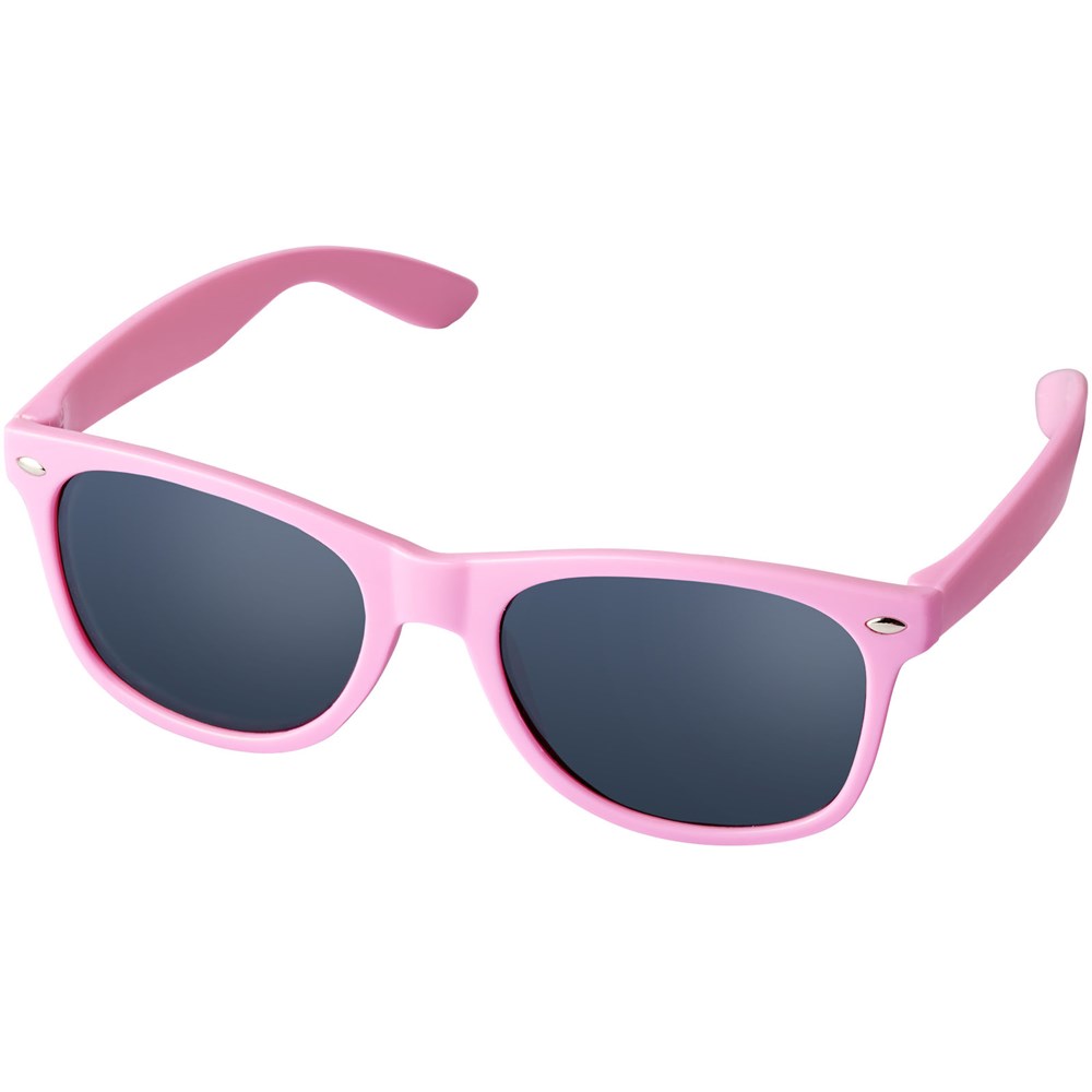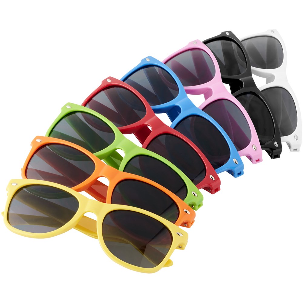Sun Ray retro zonnebril in frisse kleuren voor kinderen. Aanbevolen leeftijd van 3 tot 12 jaar. Voldoet aan EN ISO 12312-1 en UV-400, glazen zijn van klasse 3. Standaard komt de bedrukking op 1 pootje