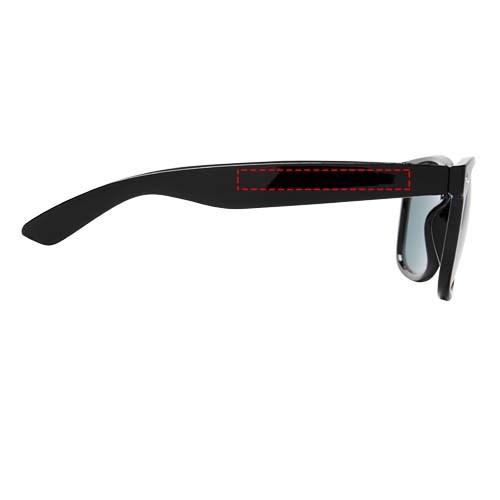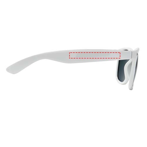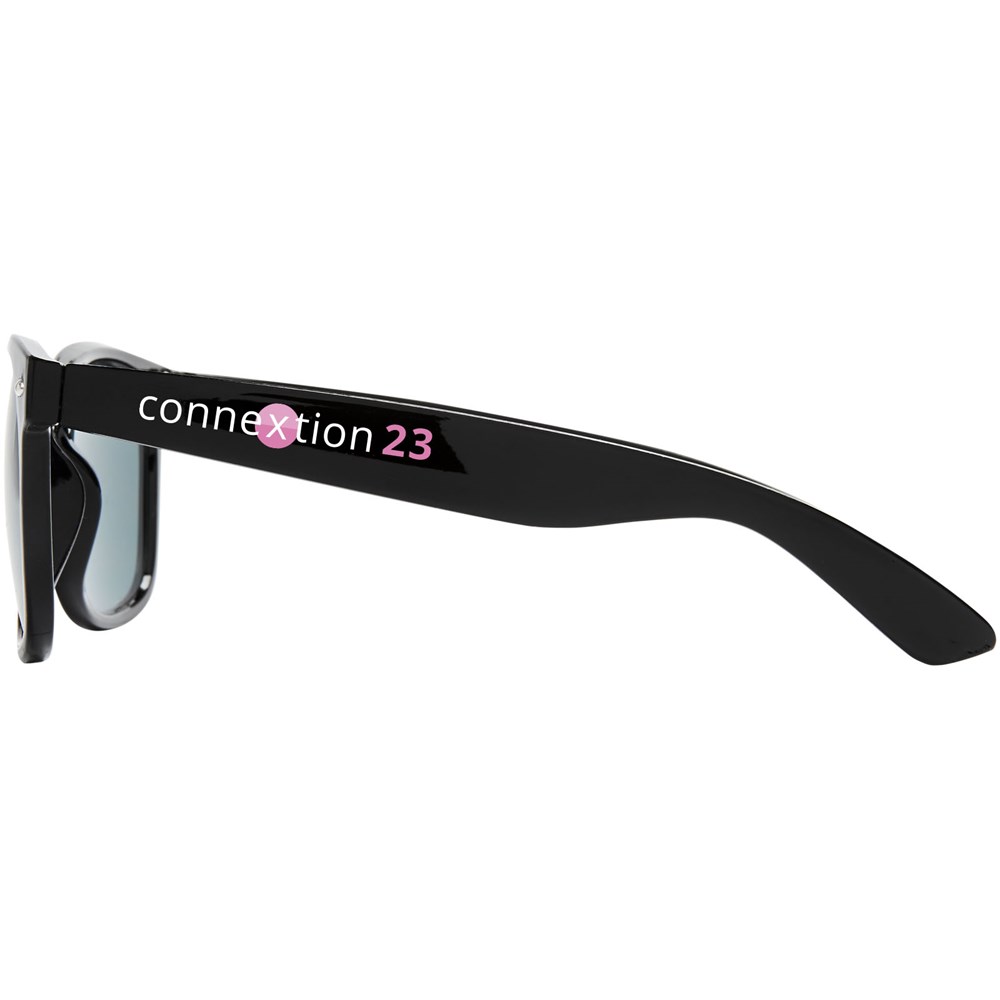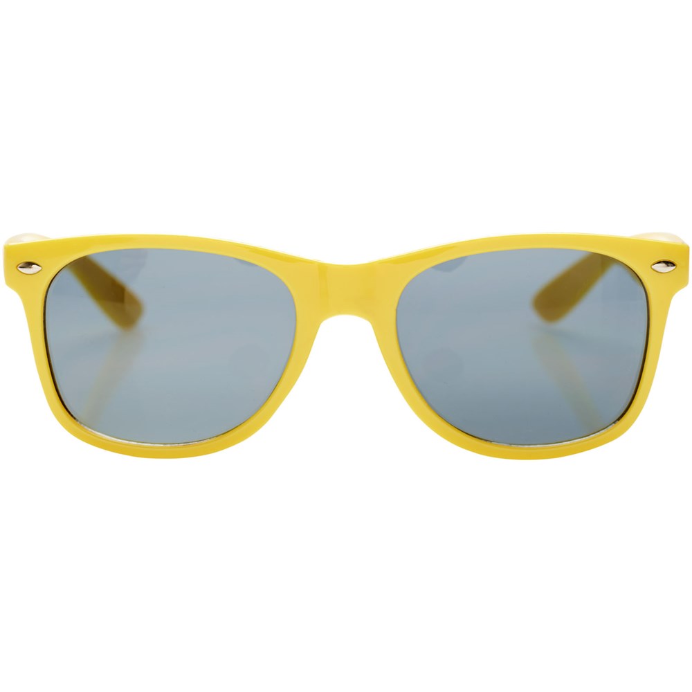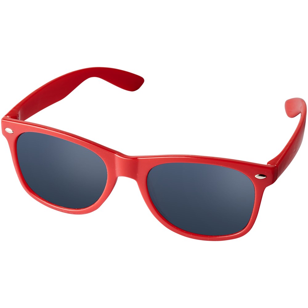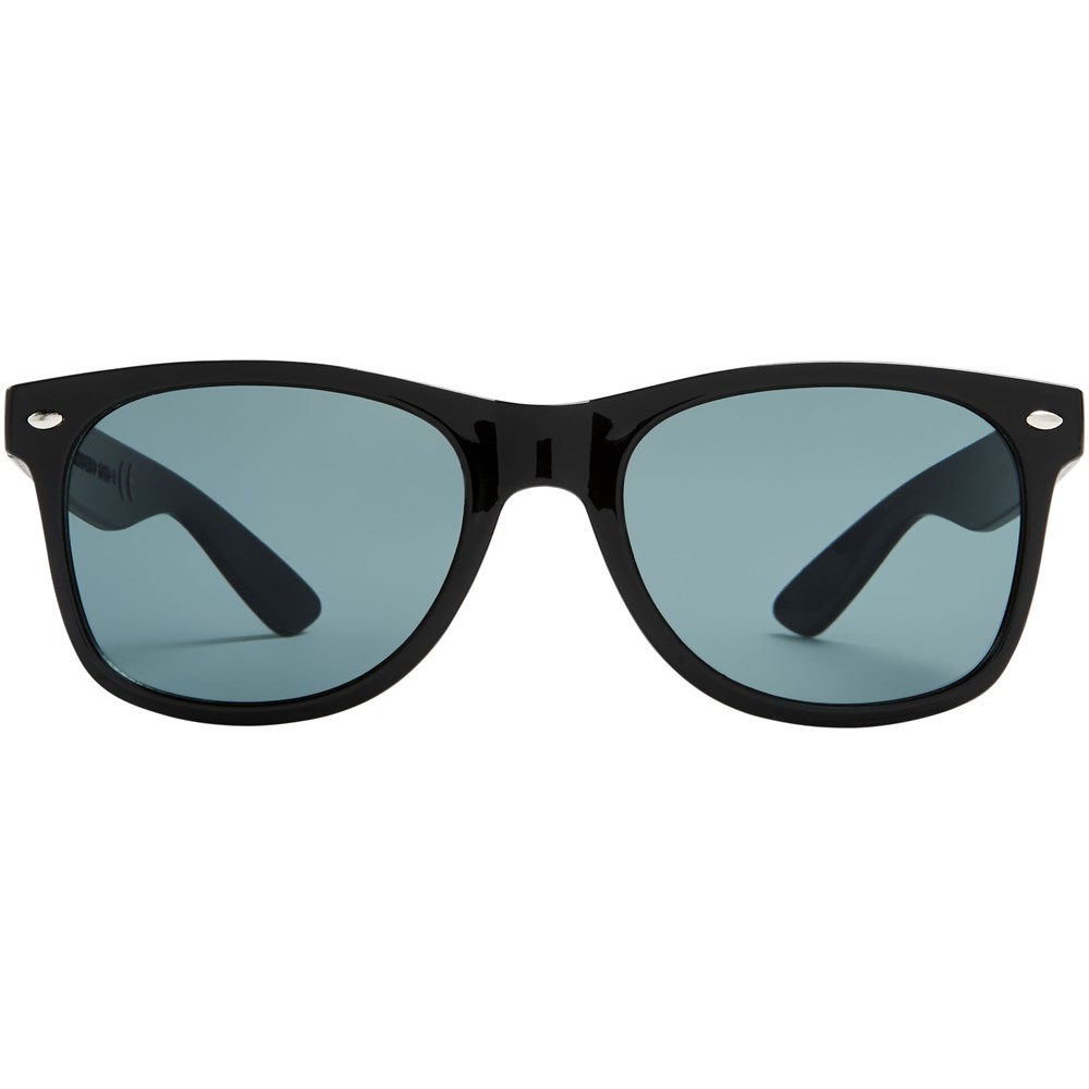 Sun Ray retro zonnebril in frisse kleuren voor kinderen. Aanbevolen leeftijd van 3 tot 12 jaar. Voldoet aan EN ISO 12312-1 en UV-400, glazen zijn van klasse 3. Standaard komt de bedrukking op 1 pootje