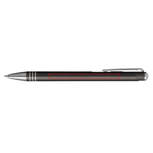 Balpen met klikmechanisme en gekartelde drukknop. Zwartschrijvend.