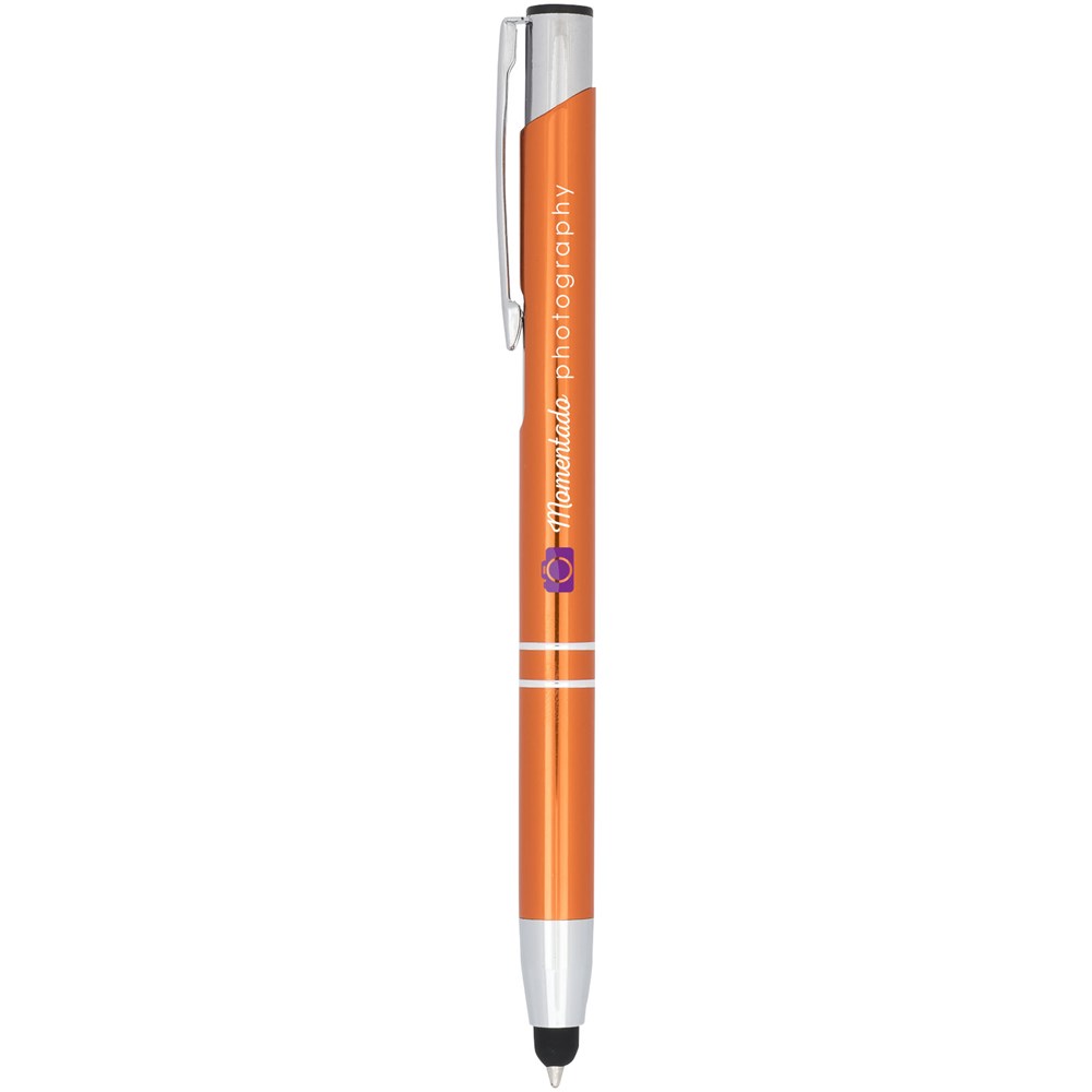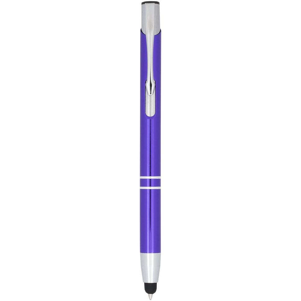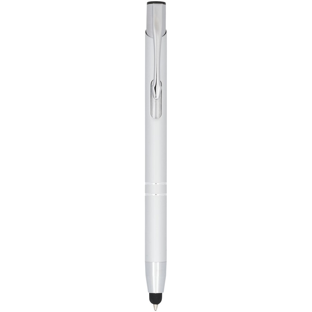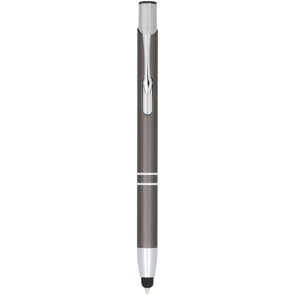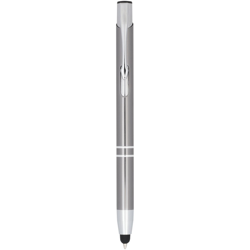 De metaalkleurige geanodiseerde balpen heeft een ingebouwde stylus aan de penpunt. De pen is verkrijgbaar in een grote variëteit aan kleuren en heeft een geanodiseerde afwerking die hem een prachtige glans geeft. Het uitgebreide en populaire Moneta-assortiment is verkrijgbaar in vele verschillende stijlen en afwerkingen.