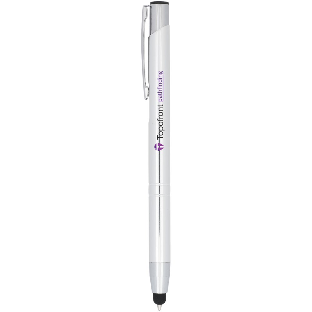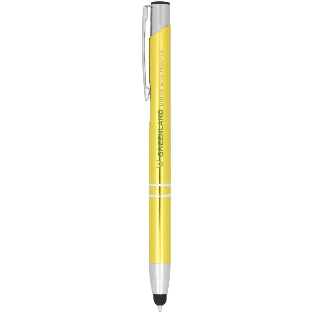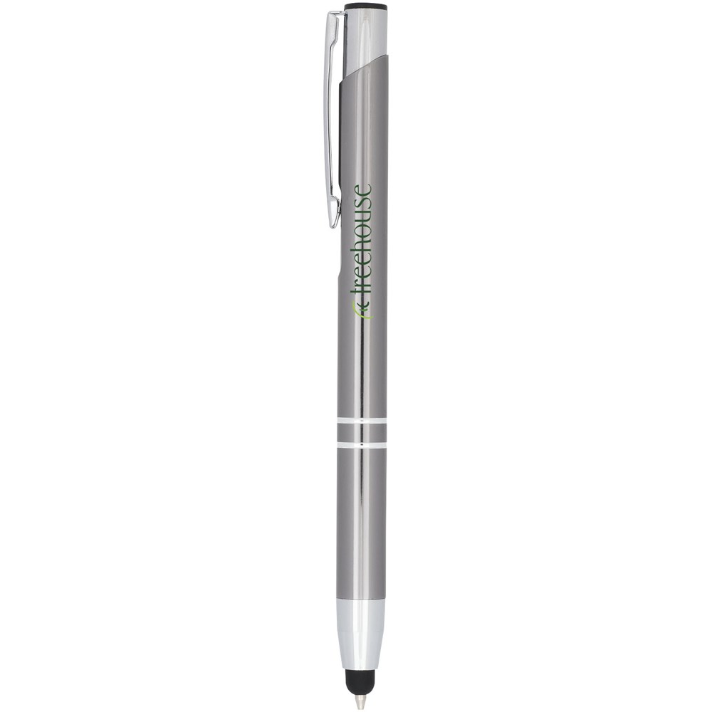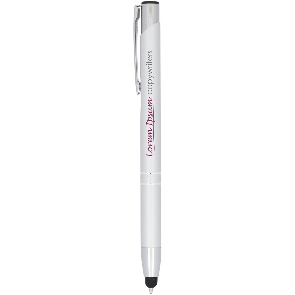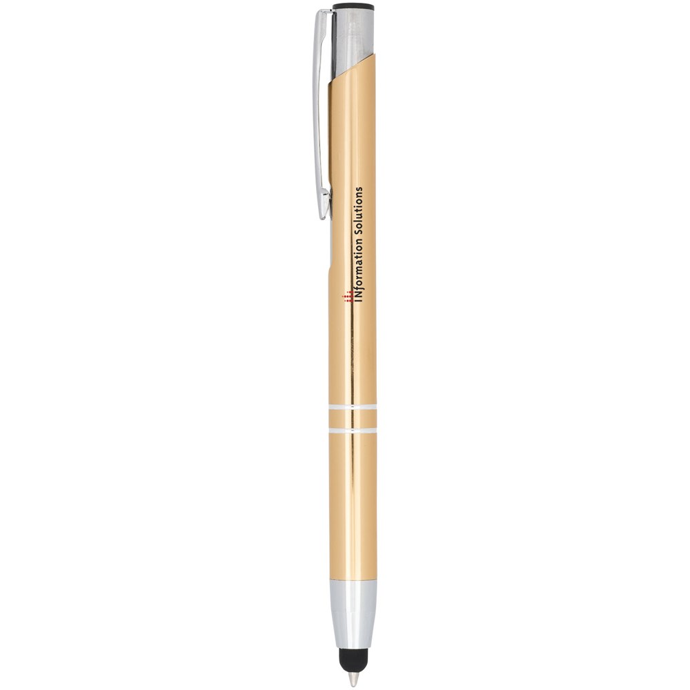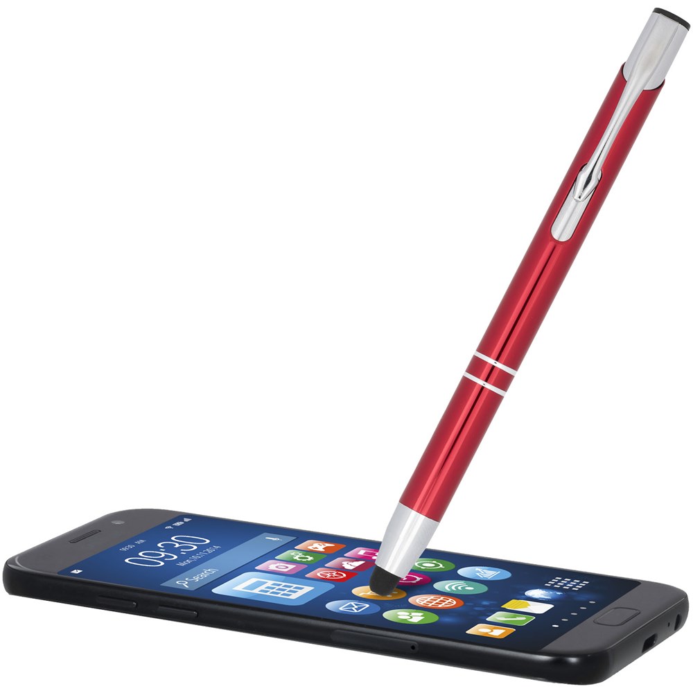 De metaalkleurige geanodiseerde balpen heeft een ingebouwde stylus aan de penpunt. De pen is verkrijgbaar in een grote variëteit aan kleuren en heeft een geanodiseerde afwerking die hem een prachtige glans geeft. Het uitgebreide en populaire Moneta-assortiment is verkrijgbaar in vele verschillende stijlen en afwerkingen.