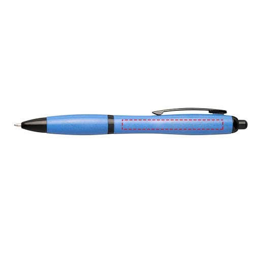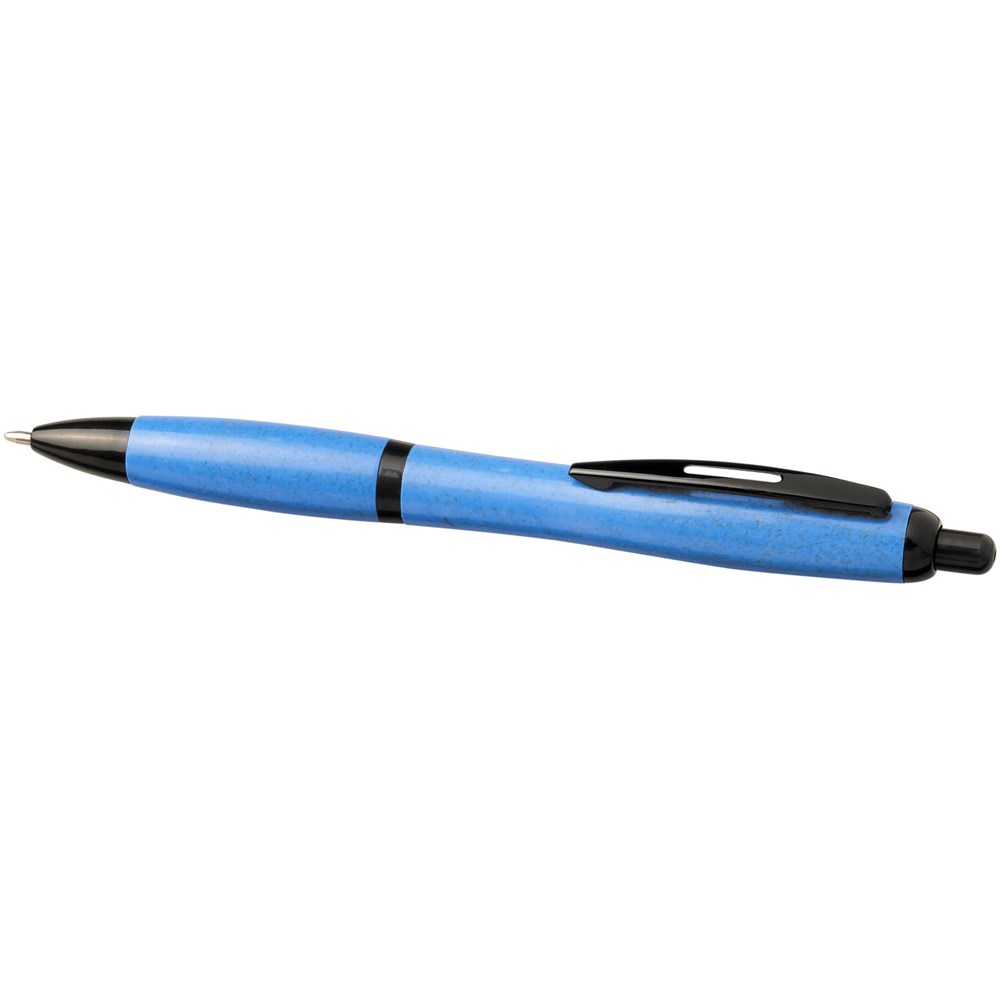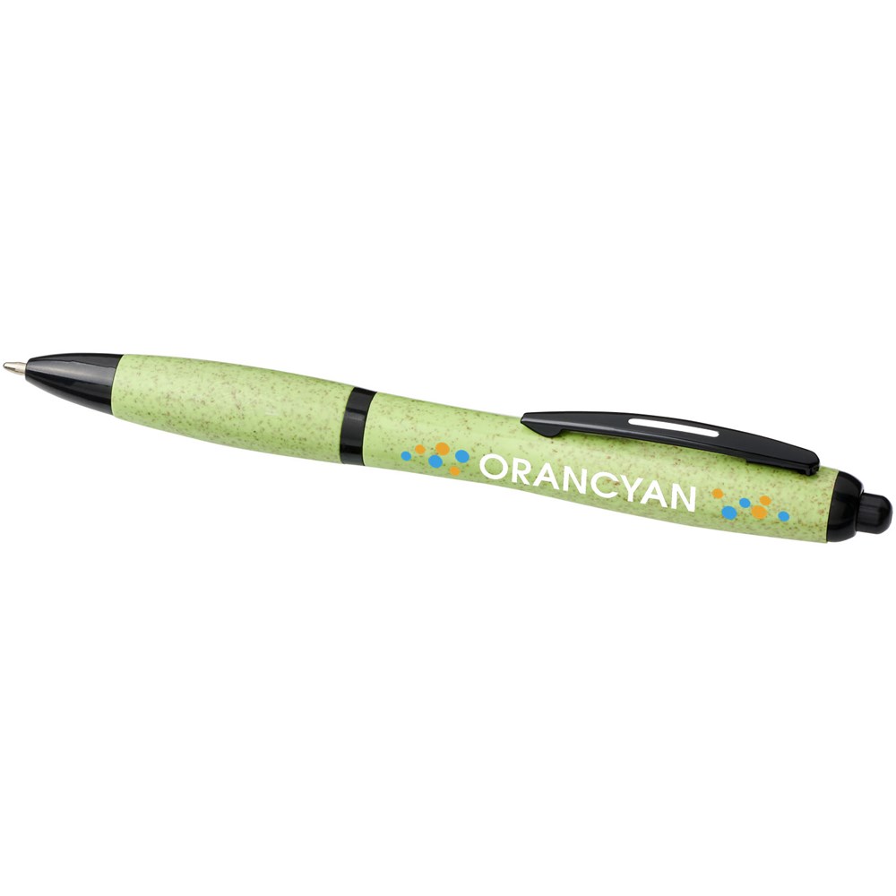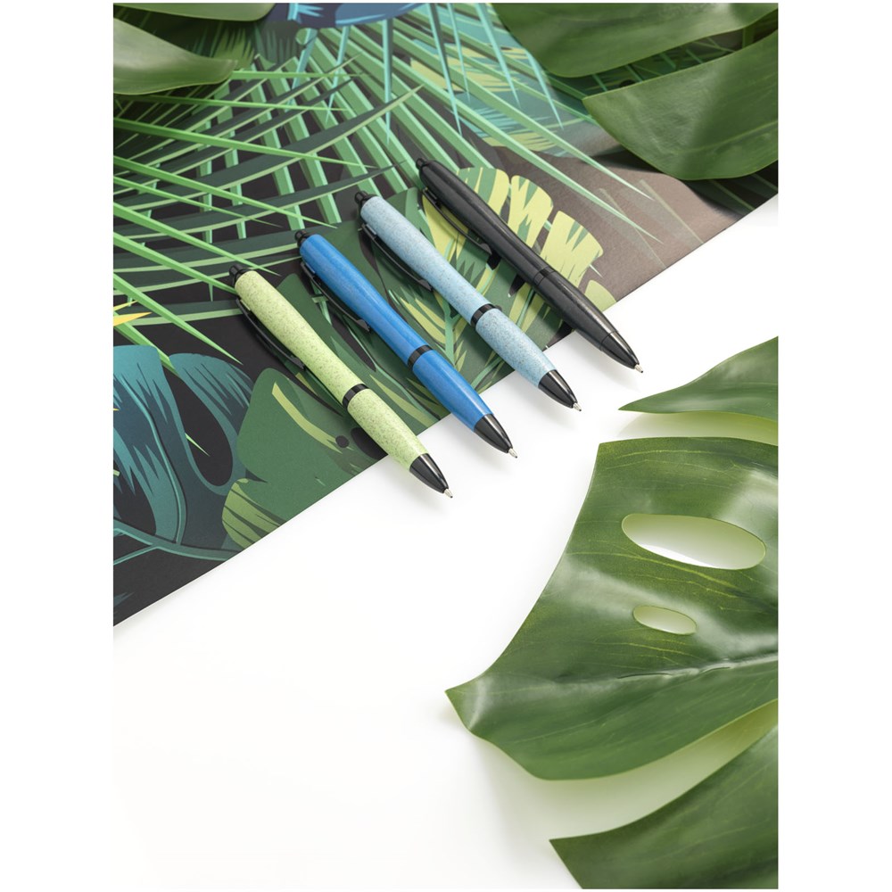 Balpen met klikmechanisme, met een huls van tarwestro en afgewerkt met effen zwarte details. Na het oogsten van de tarwekorrels blijft er tarwestro over, waardoor er minder plastic wordt gebruikt.