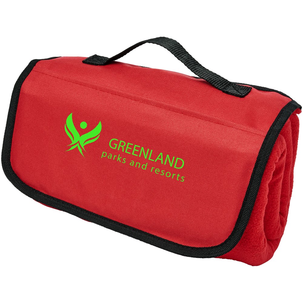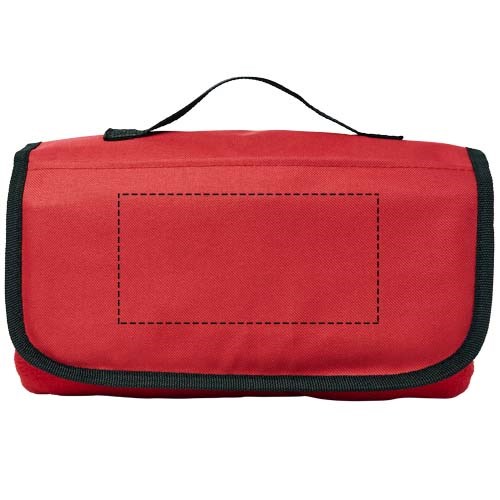 Klassieke deken met een handgreep zodat je hem gemakkelijk mee kunt nemen. Met een voorvak op de flap. Dekenformaat is 135 x 117 cm.