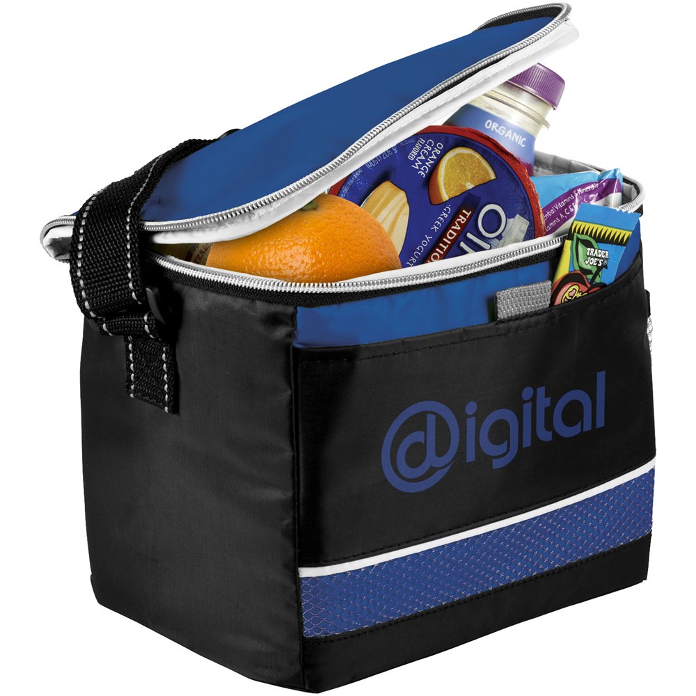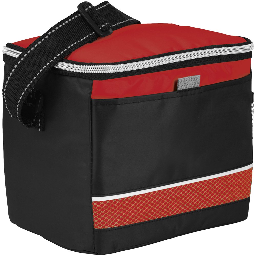 Koeltas met hoofdvak met ritssluiting. Open voorvak. Gaasvak aan de zijkant. Verstelbare schouderband. PEVA-isolatie.