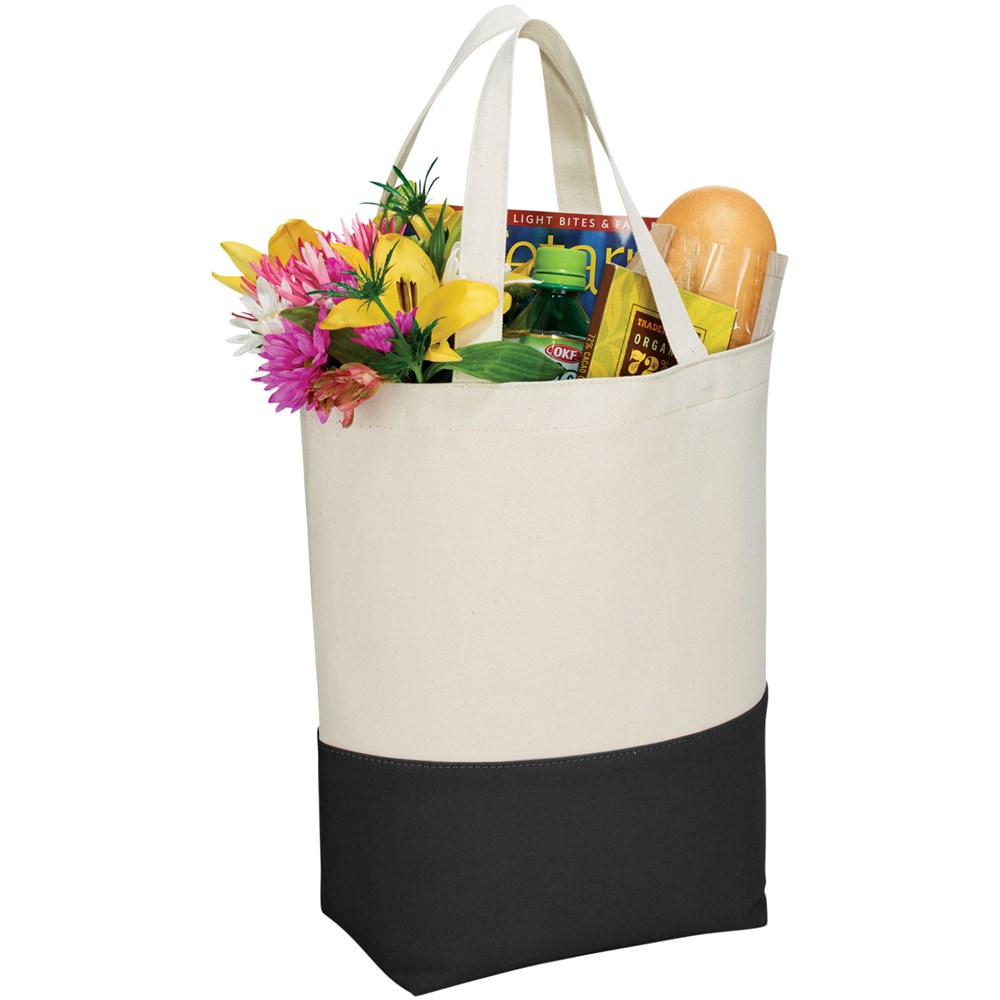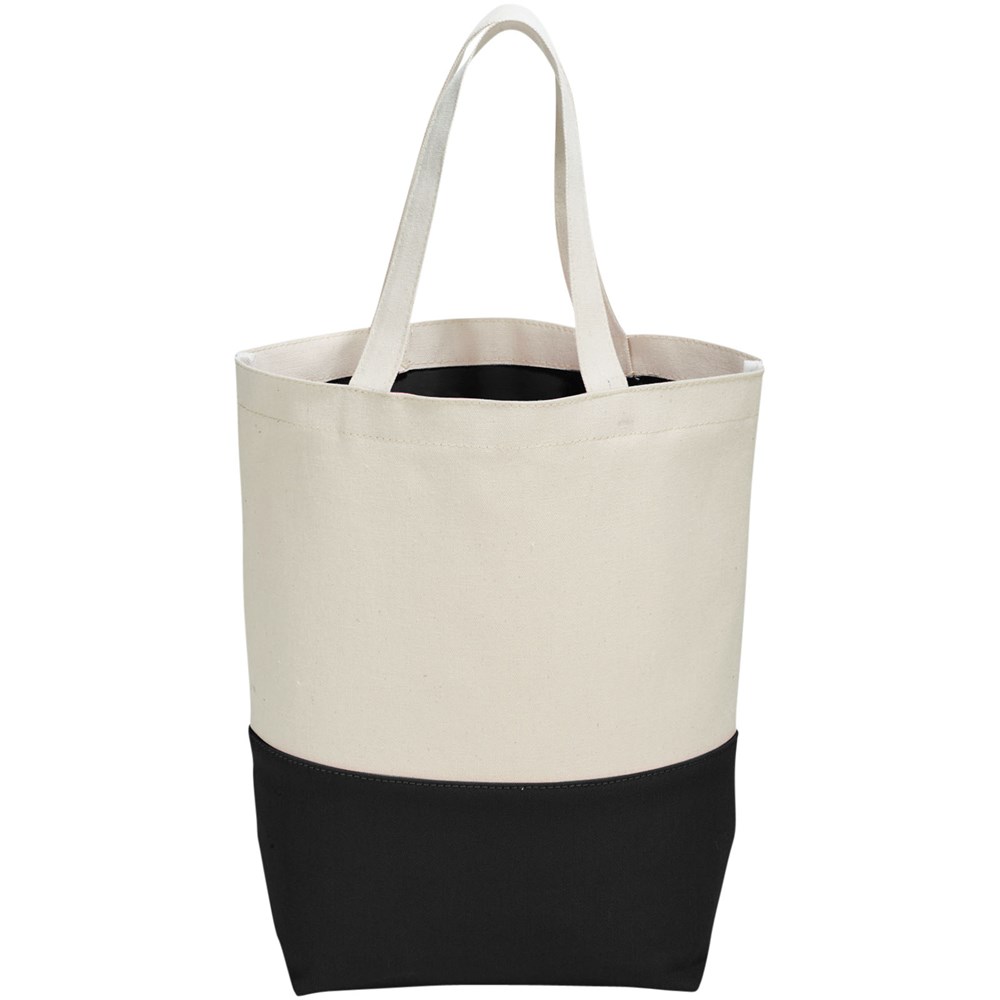 Colour pop 284 g/m² katoenen boodschappentas. Katoenen boodschappentas beschikt over een aantrekkelijk contrastkleuren accent aan de onderzijde van de tas. De contrasterende kleur wordt herhaald aan de binnenzijde van de tas in de PVC voering. Deze voering laat zich eenvoudig reinigen en is perfect voor strand of zwemkleding. Voorzien van bodemplaat voor extra versteviging. Draaghoogte 18 cm. Katoen 284 g/m².