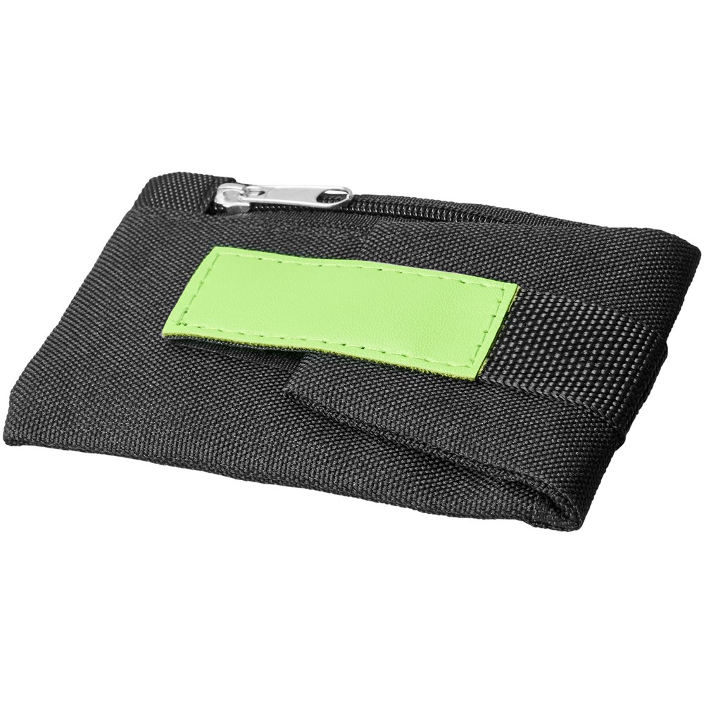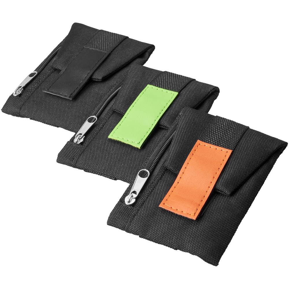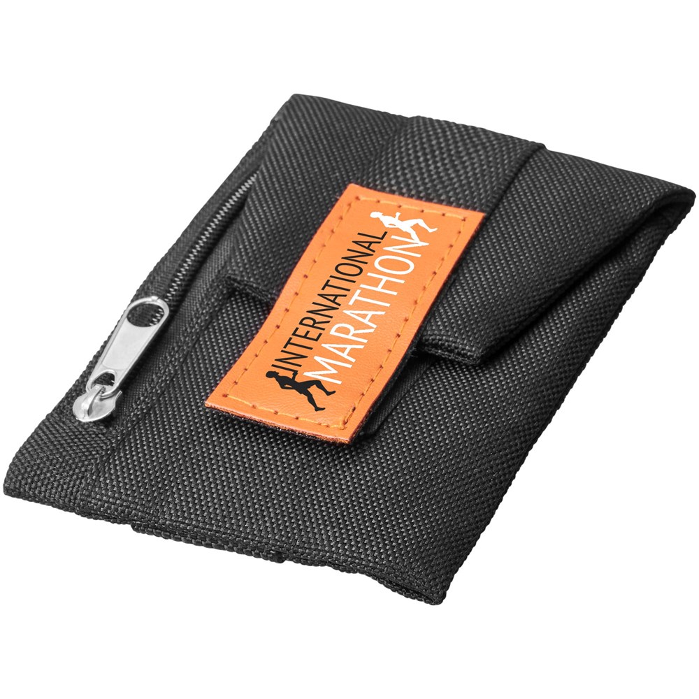 Kleine maar handige portemonnee die aan een schoen of broek kan worden bevestigd. Wordt geleverd met een ritssluiting, klittenbandsluiting en met verborgen vakjes om waardevolle spullen te beschermen tijdens het sporten. Groot decoratievlak aan de voorkant.