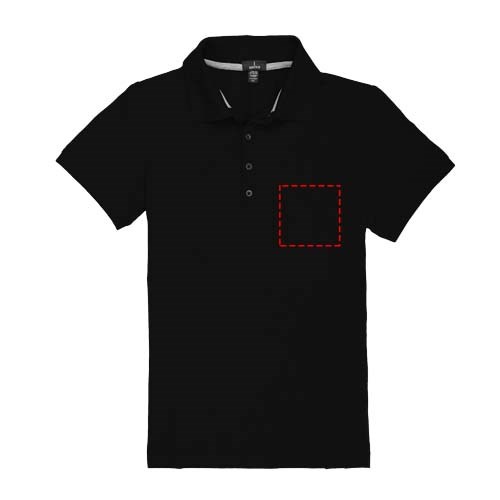 Wasbaar op 60 ˚ C. ISO 15797: voldoet aan de standaard van industrieele wasvoorschriften. UV bescherming: UPF 40+. Knopenlijst met vier knopen. Zijsplit. Vlakgebreide kraag. Plat gebreide rib mouw. Gegraveerde knopen. Nektape in contrasterende kleur. Transfer maatlabel voor extra comfort.