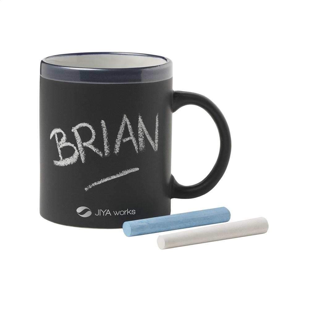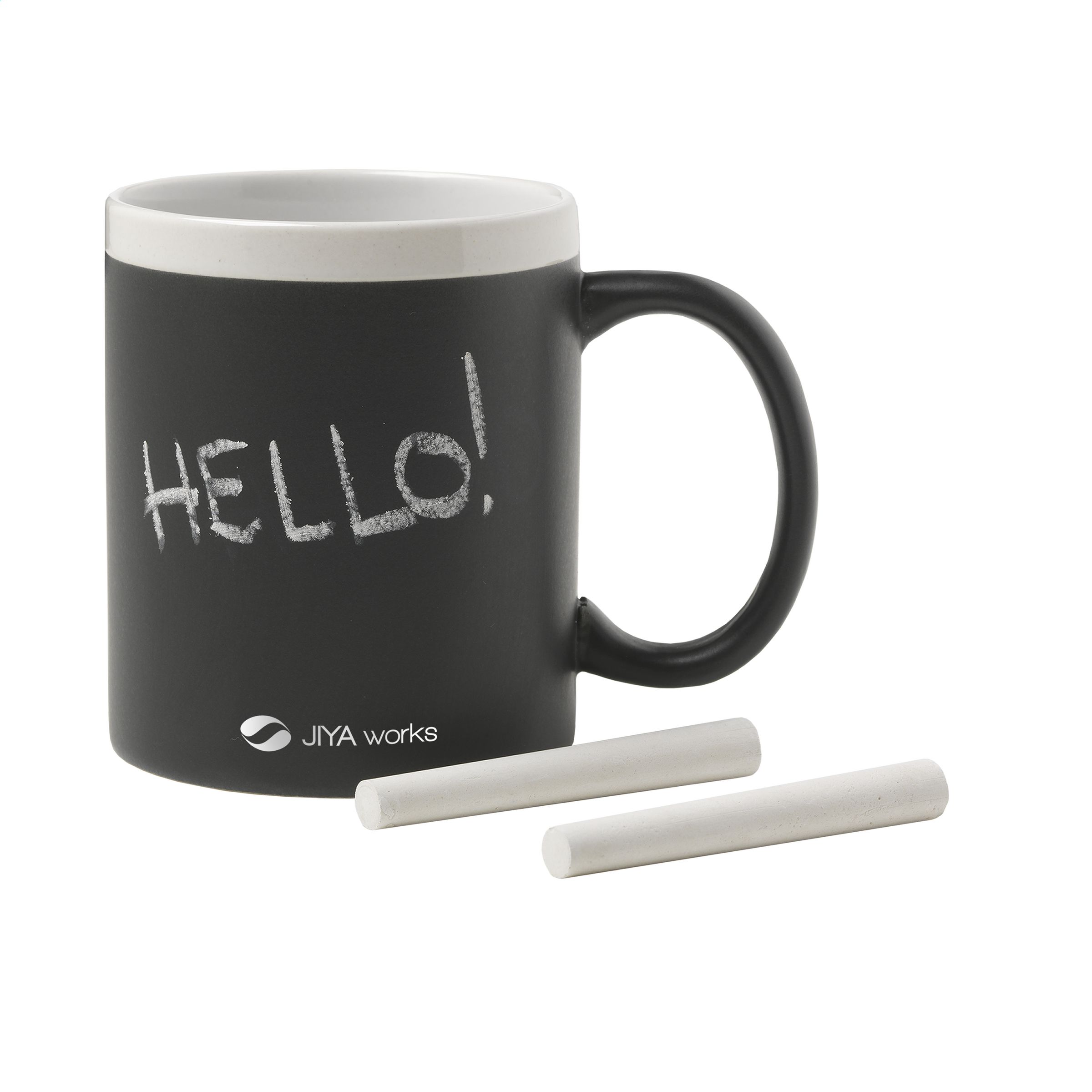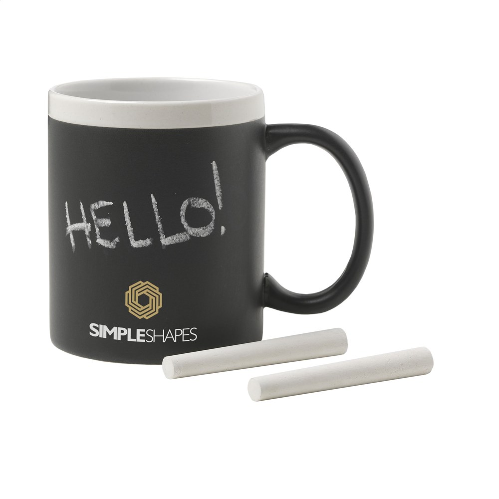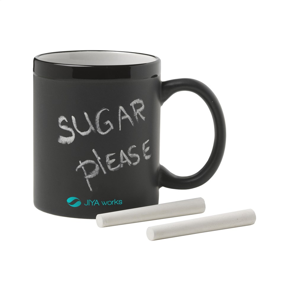 Beschrijfbare, keramische mok, incl. 2 krijtjes. Inhoud 350 ml. Per stuk in doos.