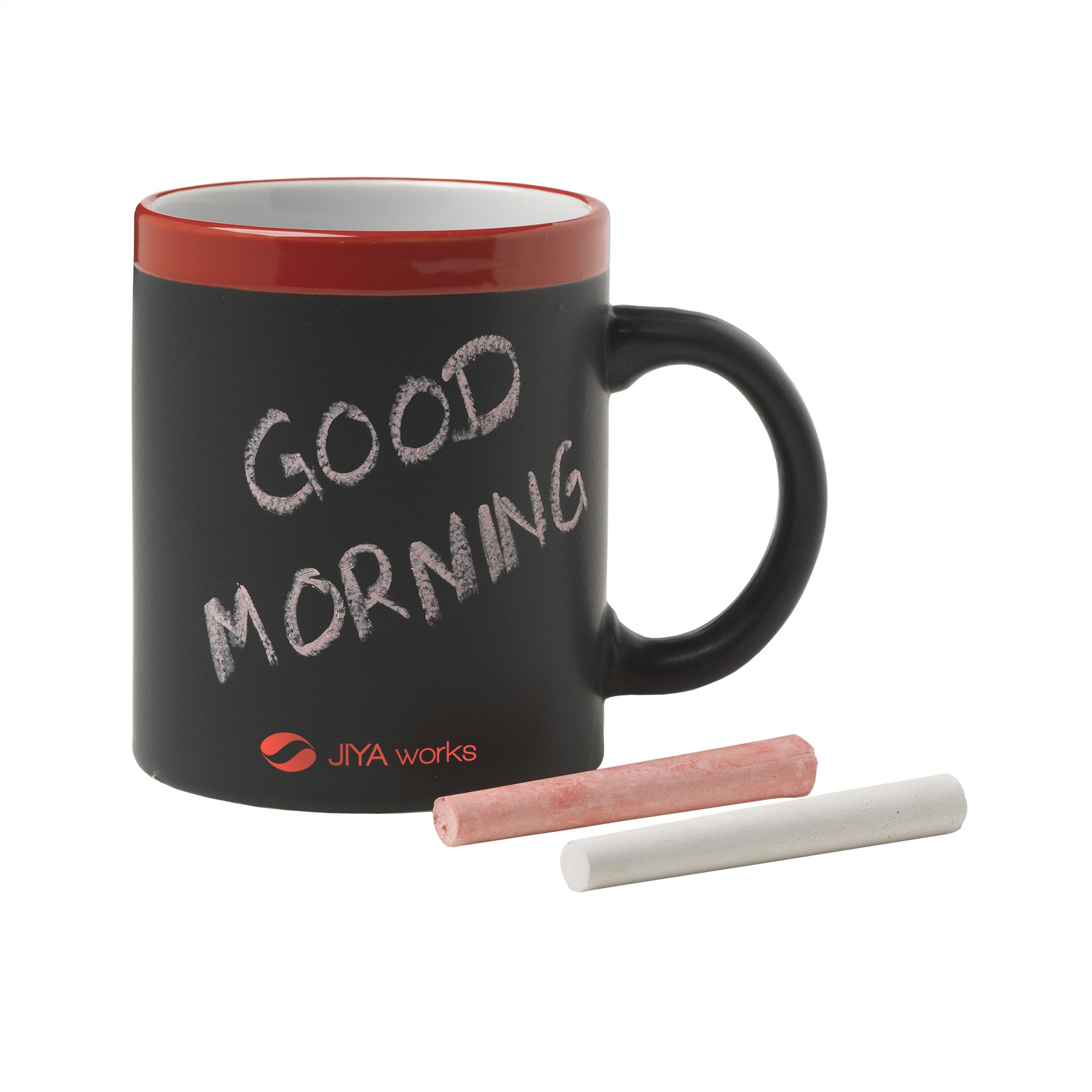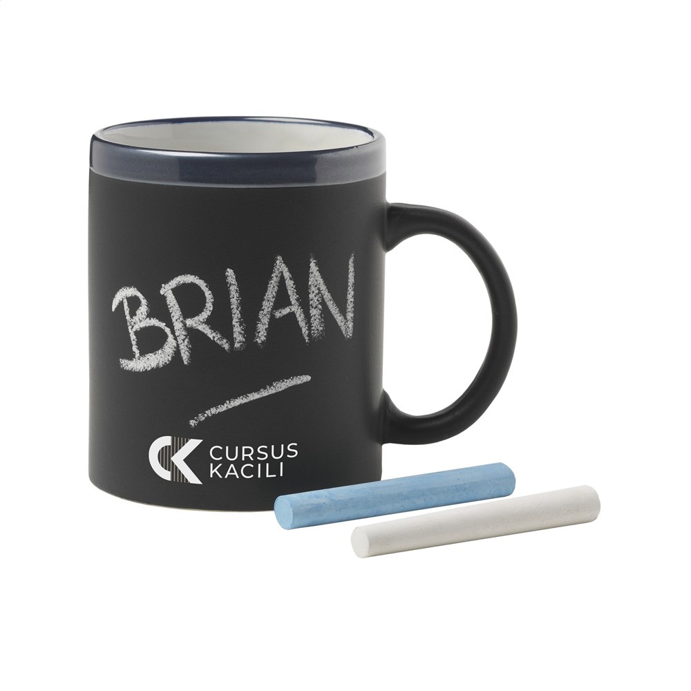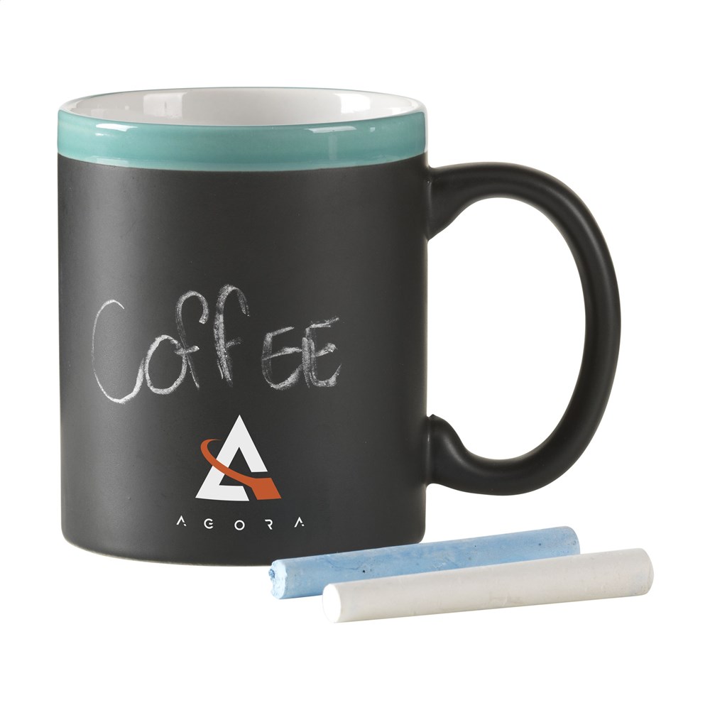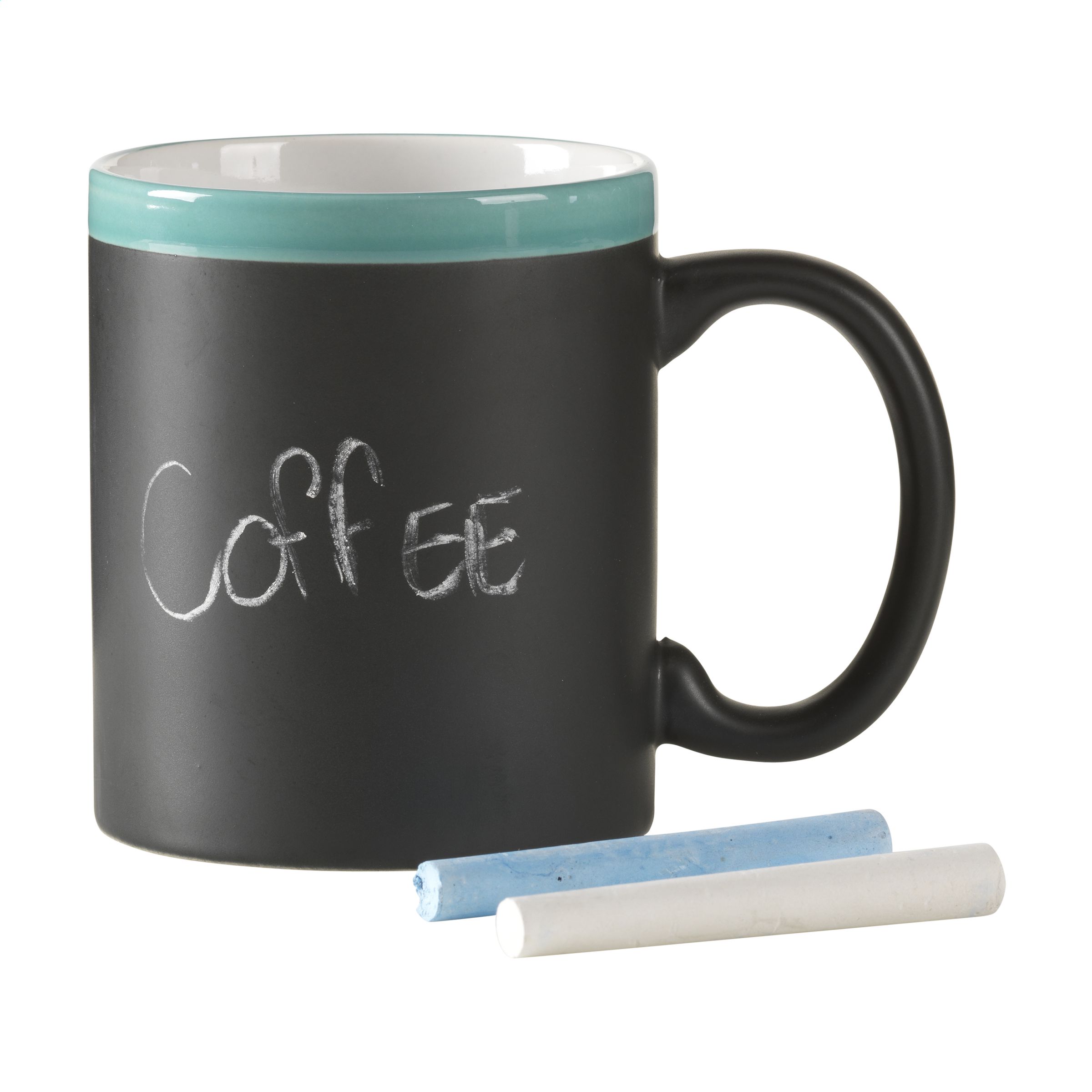 Beschrijfbare, keramische mok, incl. 2 krijtjes. Inhoud 350 ml. Per stuk in doos.